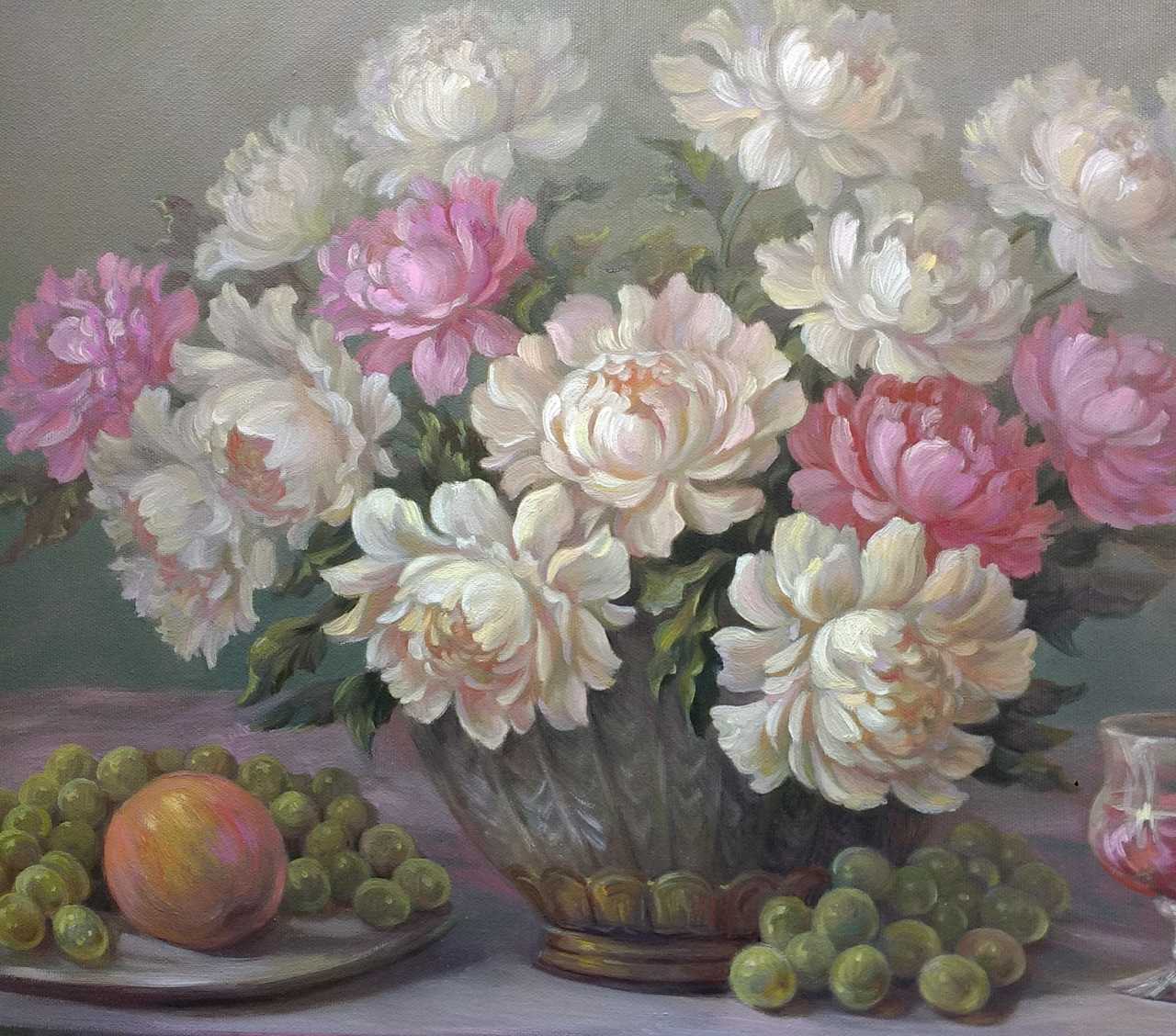 Пионы и фрукты. Leinwand auf dem Hilfsrahmen Öl классическая современная живопись Blumen- und Fruchtstillleben Ukraine 2020