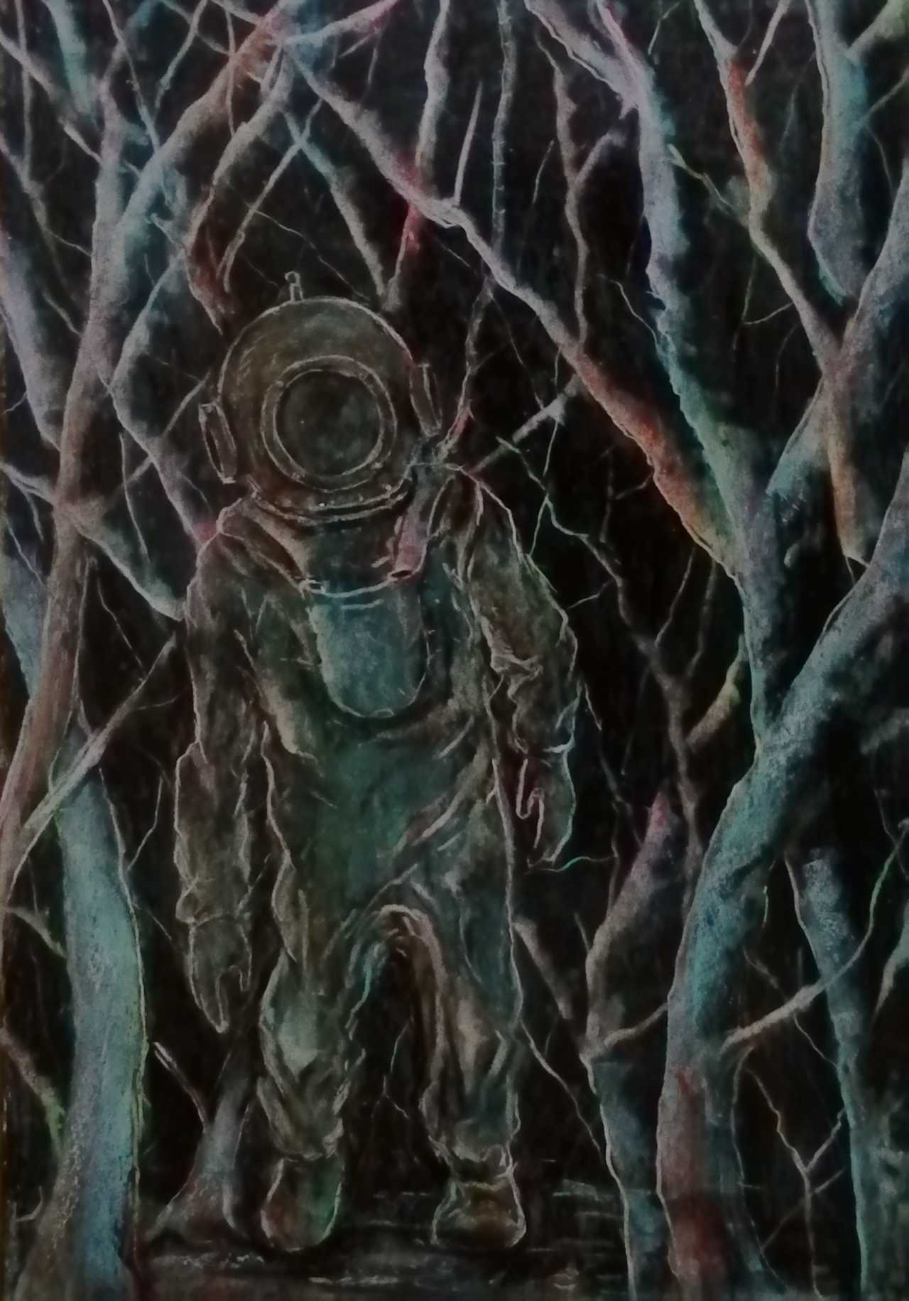 Рисунок на бумаге 21/30см, в остеклённой раме, масляная пастель, акриловый лак,2024г.