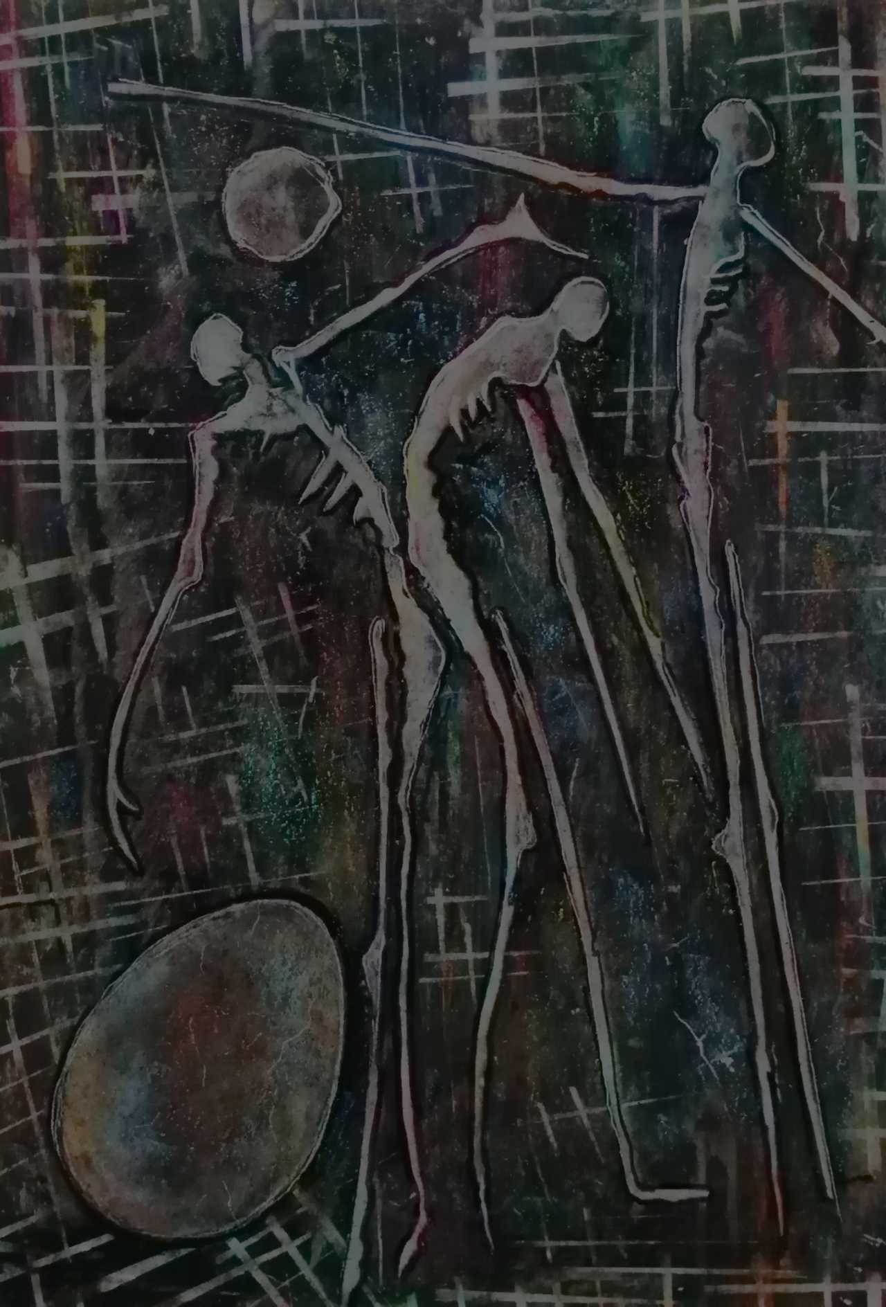 Рисунок на бумаге 21 /30см, в остеклённой раме, масляная пастель, маркер, акриловый лак, 2025г
