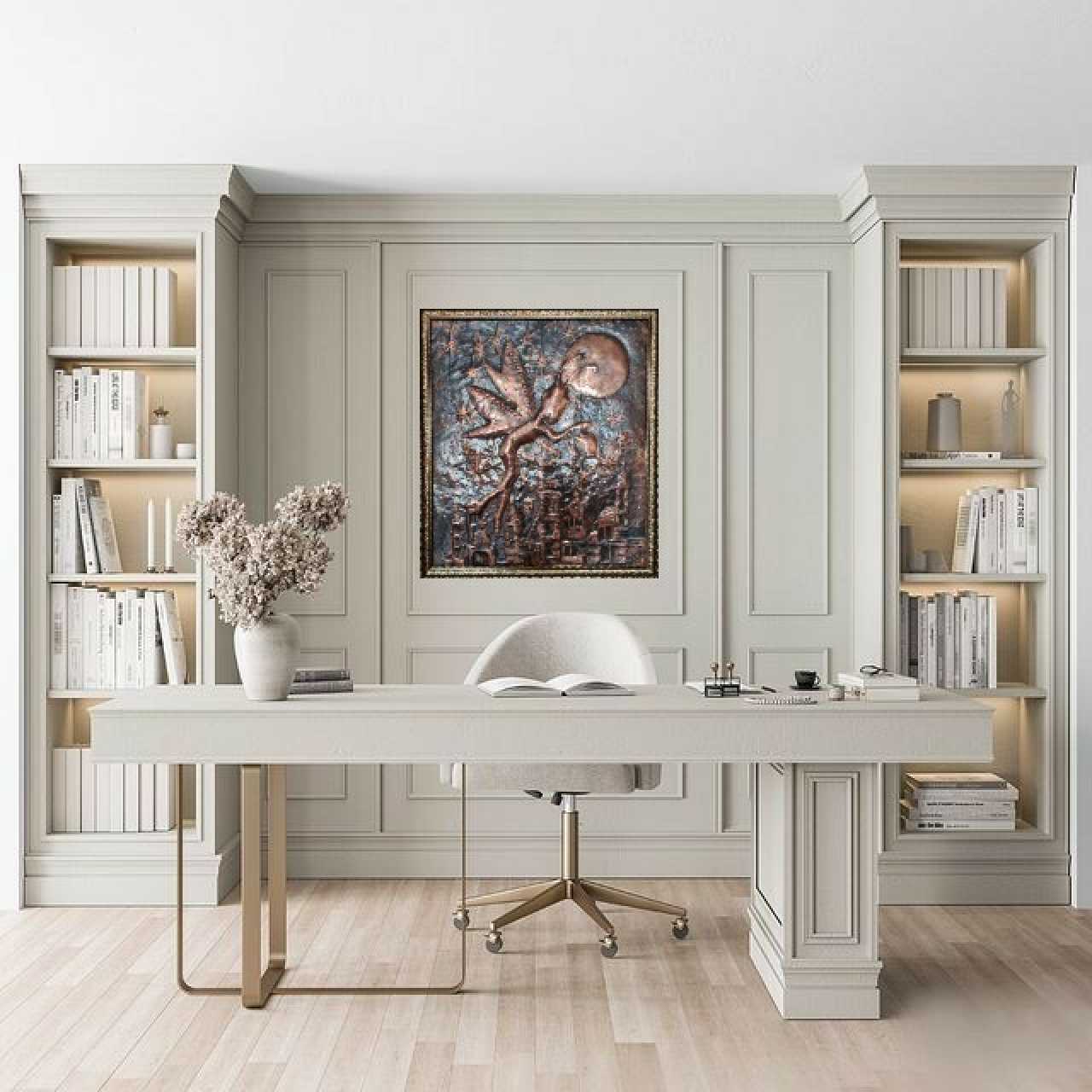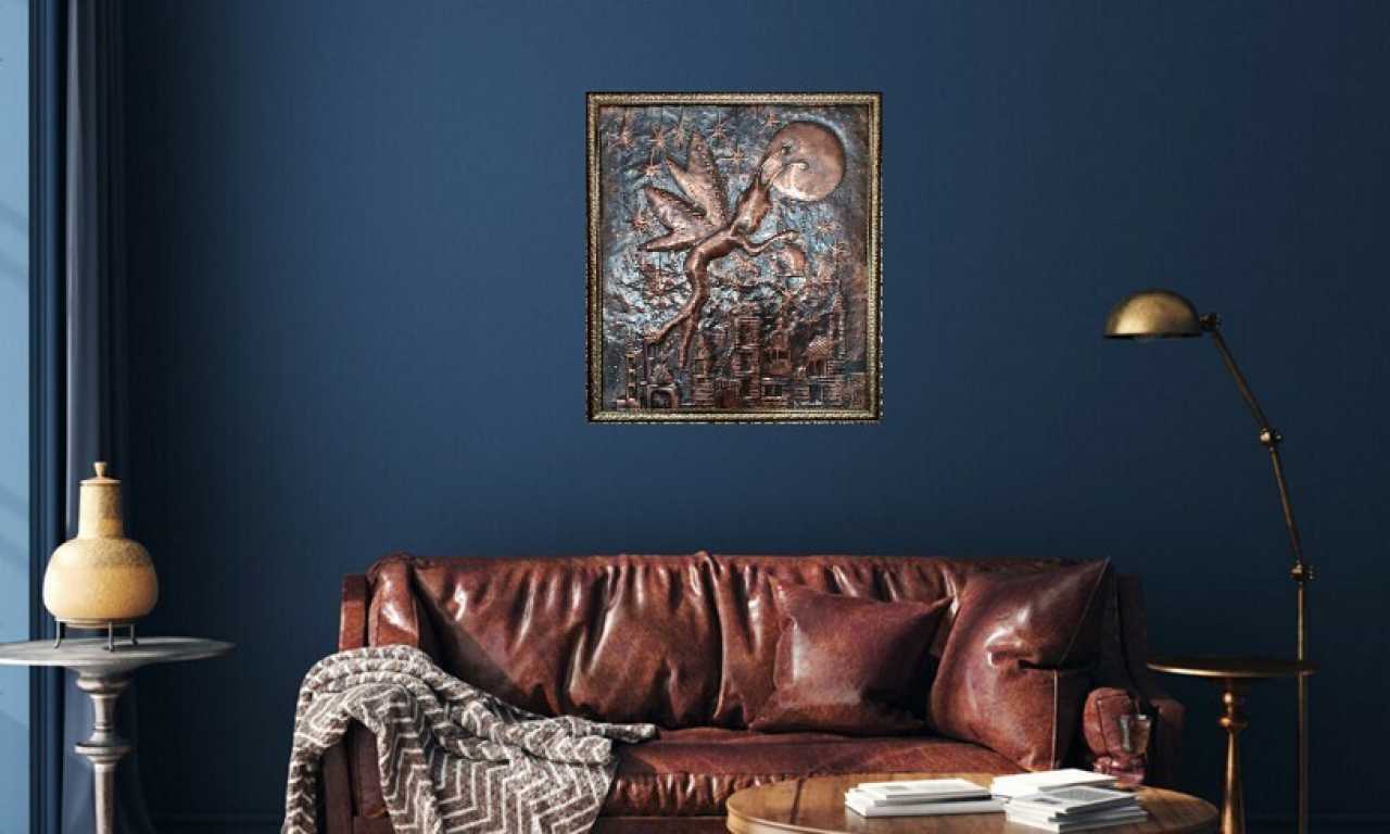 Панно выполнено в авторской технике из листа меди . Работа оформлена в багет . Сертификат на русском и английском языках.