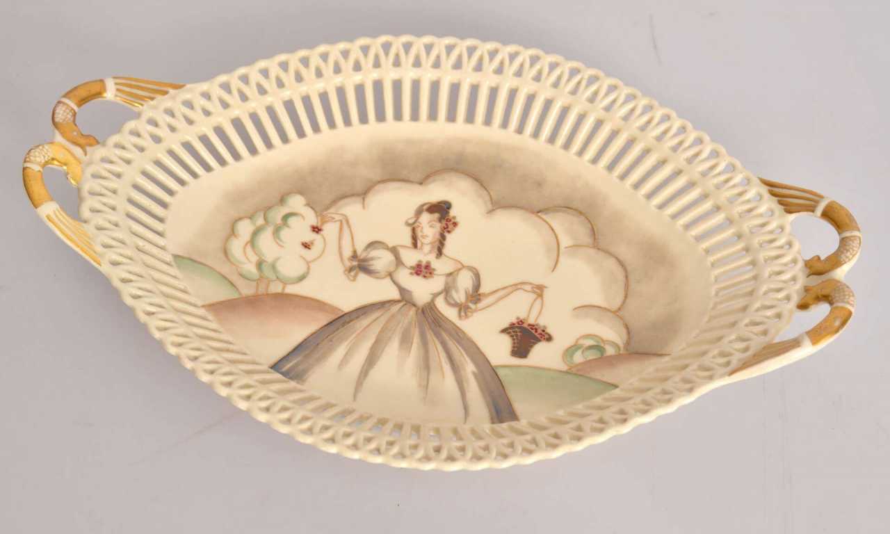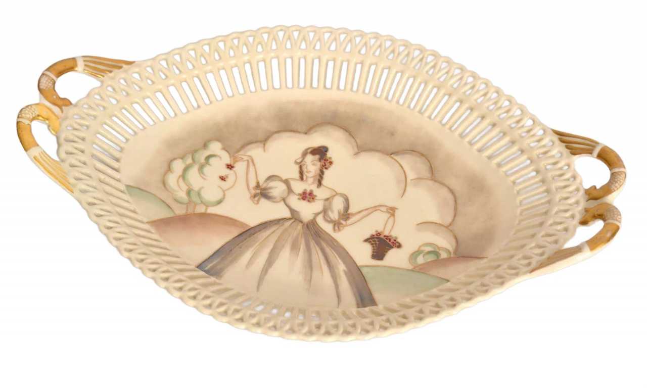 Porcelaine ivoire, peinte à la main. Initiales de l&39;auteur KW 31,5x21 cm