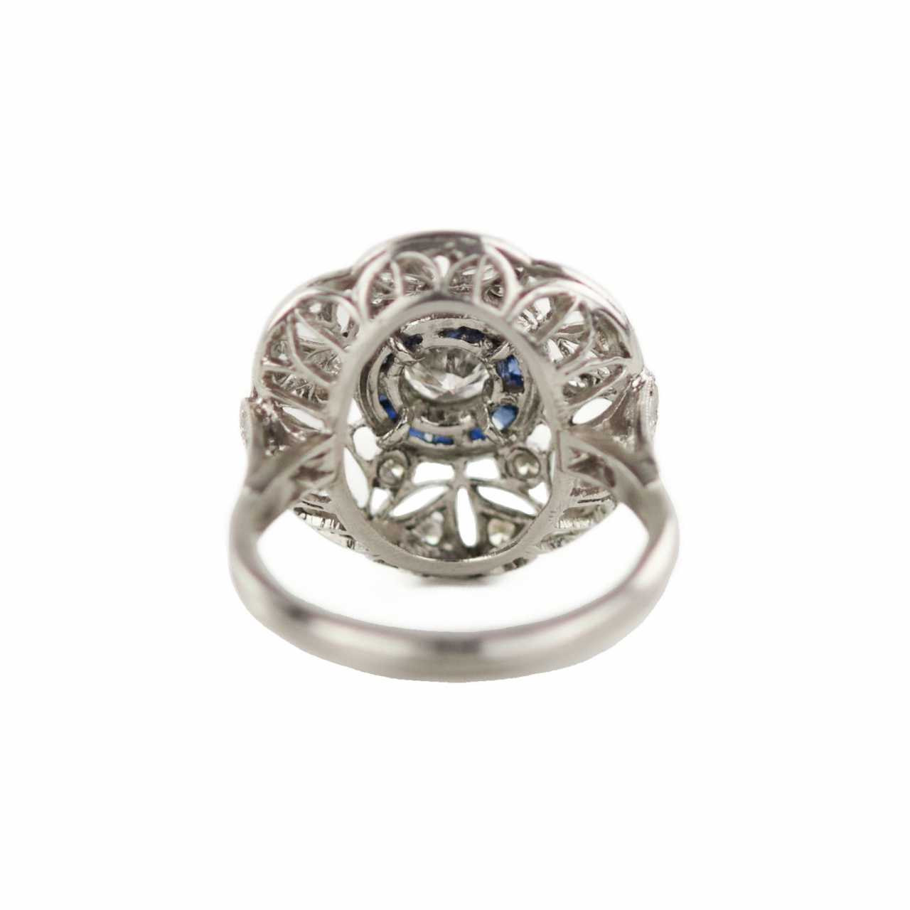 Bague de style Art Déco en platine 900 avec diamants et saphirs. Saphir 20th century