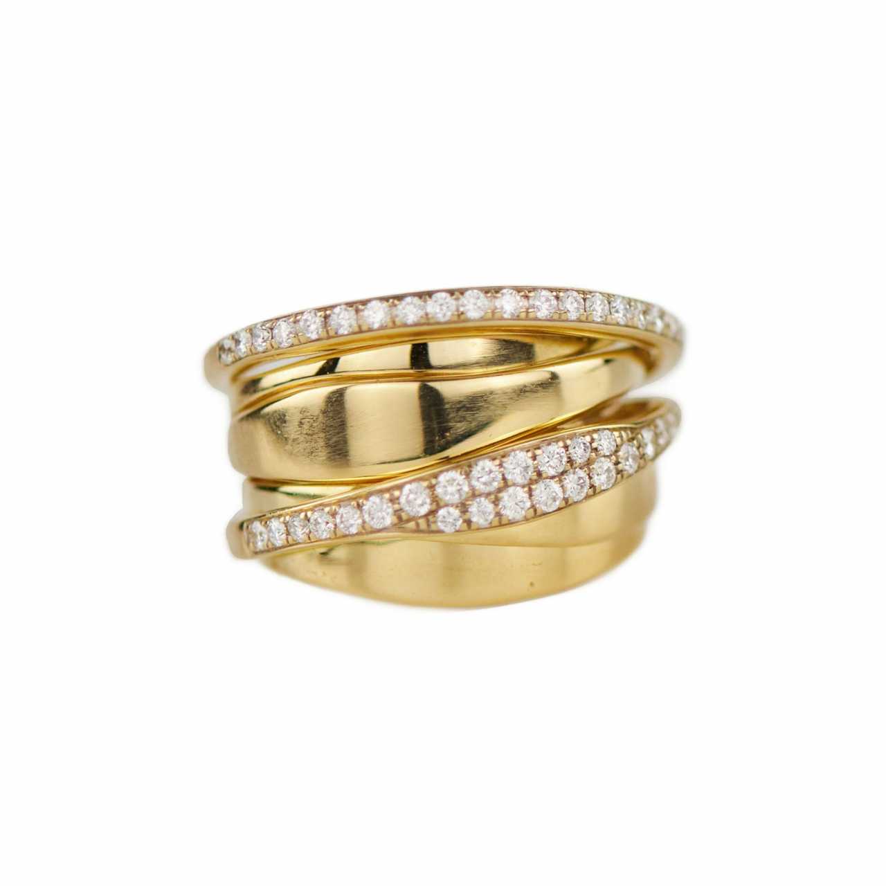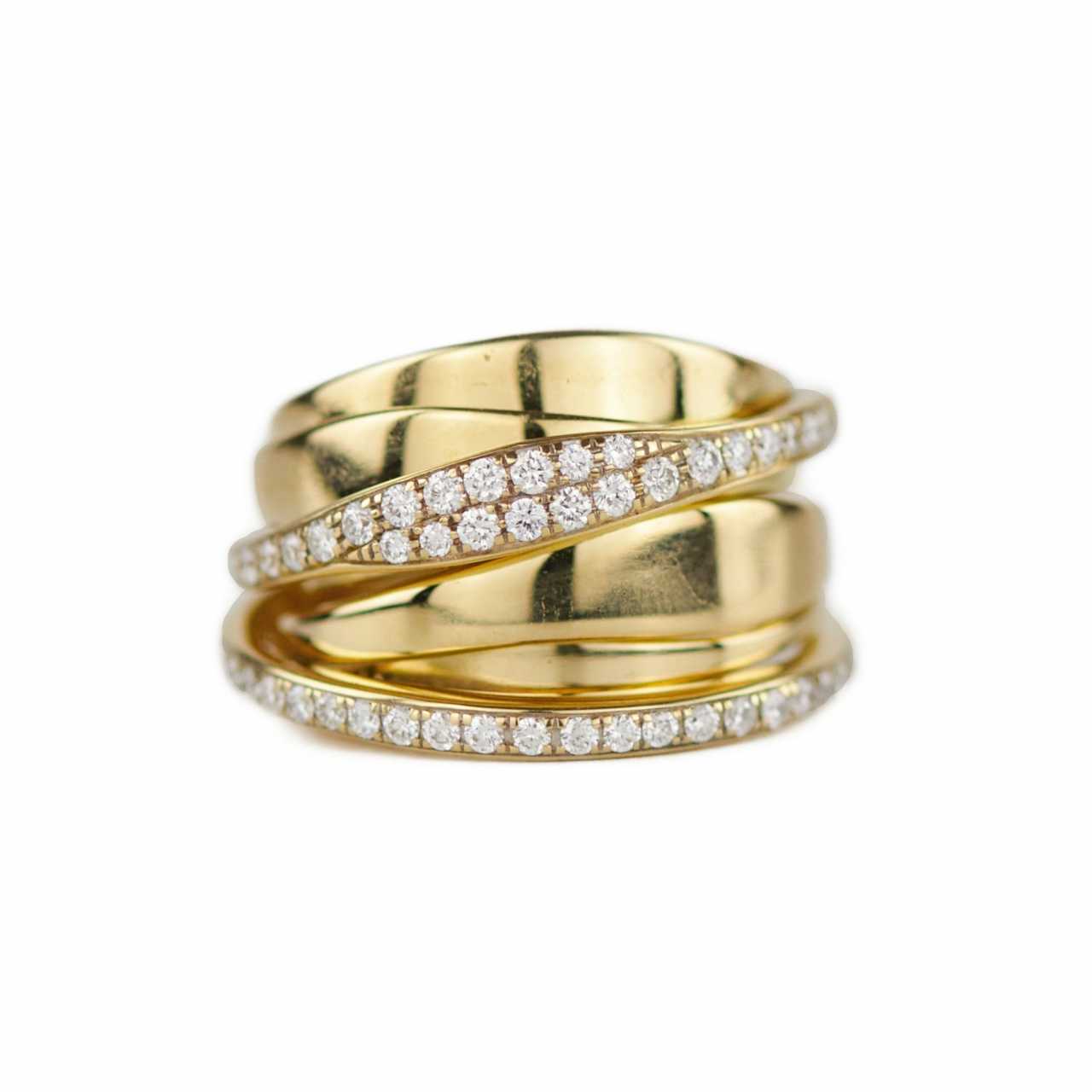 Bague en or 18 carats avec diamants. 46 diamants totalisant 0,50 carats, VS. Taille de bague : 17. Poids de la bague : 13,67 g. Certificat du Bureau danalyse letton : 3-9-11182023.