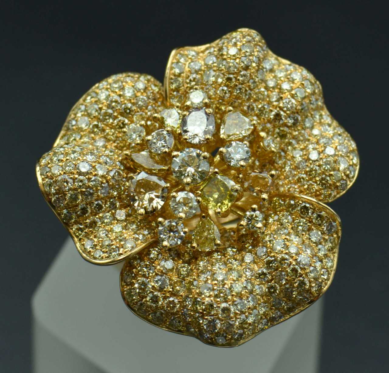 Bague en or en forme de fleur avec diamants Gold 21th century