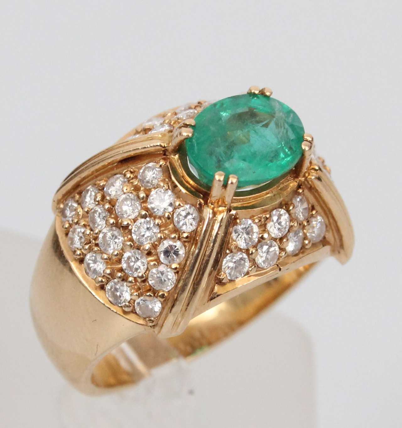 Bague en or jaune avec 48 diamants et 1 émeraude naturelle Gold Other style 21th century