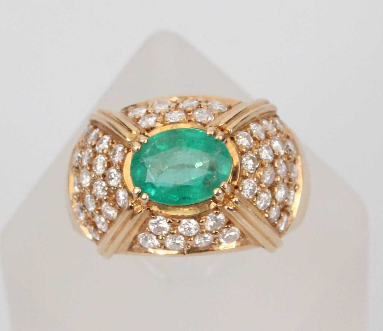 Bague en or jaune avec 48 diamants et 1 émeraude naturelle Gold Other style 21th century