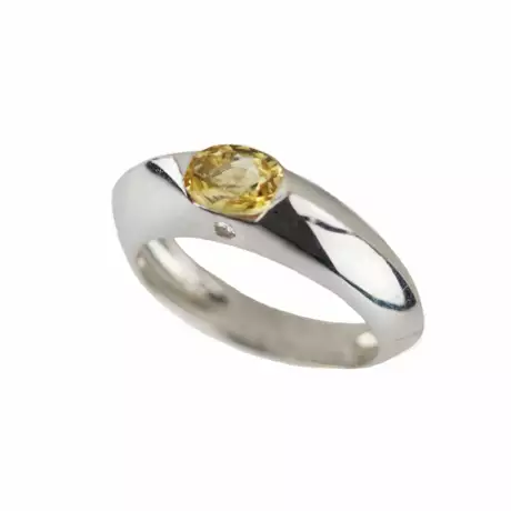 Bague en or blanc, 750, Piaget avec un saphir jaune et lasymétrie originale du diamant sur le devant de la bague. N° A84710 56. S 750. Piaget. 1998 Taille de bague : 17,5. Poids : 8,17 g.