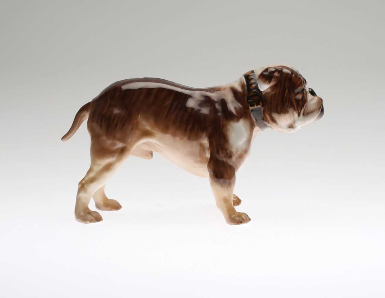 Le Bulldog est lanimal national du Royaume-Uni. La marque Royal Doulton est lune des societes britanniques de vaisselle et dobjets de collection les plus celèbres avec une histoire remontant à 1815.Lauteur du modèle est Frederick Daws, numero HN1046.