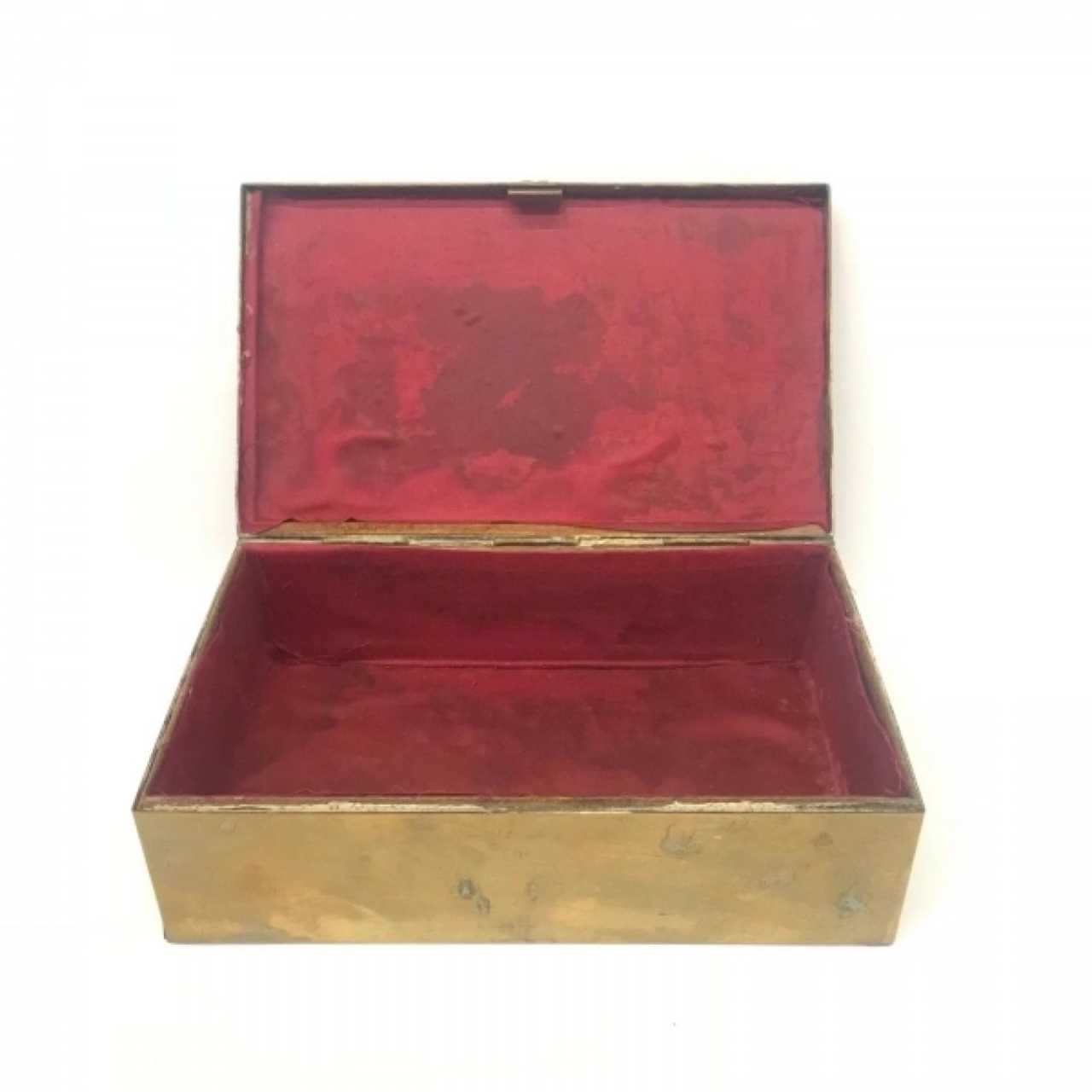 Coffret Chasse, decore dun motif cisele representant un combat de sangliers sous un chêne.7x21.5x13cm.