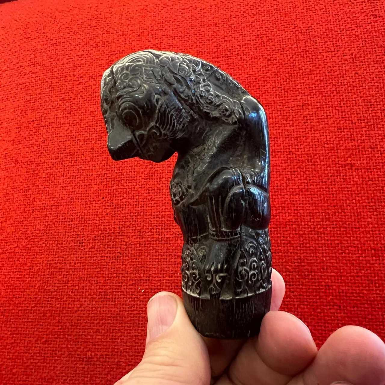 A set of thirteen kriss handles originating from Java, Indonesia, dating from the late 18th to early 19th century.Beautiful aged patina in dark or amber tones. Exquisite carving work featuring zoomorphic motifs, floral designs, and deities.Height ranges from 8 to 12 cm – Width: 4 to 5 cmThe kriss is a traditional weapon, consisting of a long dagger or a slender sword with a blade that can be straight or wavy, sharpened on both edges. The earliest known krisses date back to the 14th century and are believed to have originated in Java. However, much older depictions can be seen in the bas-reliefs of the Borobudur and Prambanan temples, built in the 9th century in central Java.The kriss gained popularity in the 16th century, alongside the rise of maritime trade across Southeast Asia. Interestingly, until 1910, two krisses were featured on the national flag of the Kingdom of Thailand.Believed to possess magical powers, the kriss also serves a ritual purpose. Each one is crafted for a single owner, who is spiritually involved in the process with the blacksmith. So important is the kriss that it can symbolically stand in for its owner during ceremonies.In the 19th and 20th centuries, the kriss became especially popular due to its use in traditional Balinese dance performances. Since 2008, the kriss and the art of its craftsmanship have been inscribed on UNESCO’s list of Intangible Cultural Heritage of Humanity.