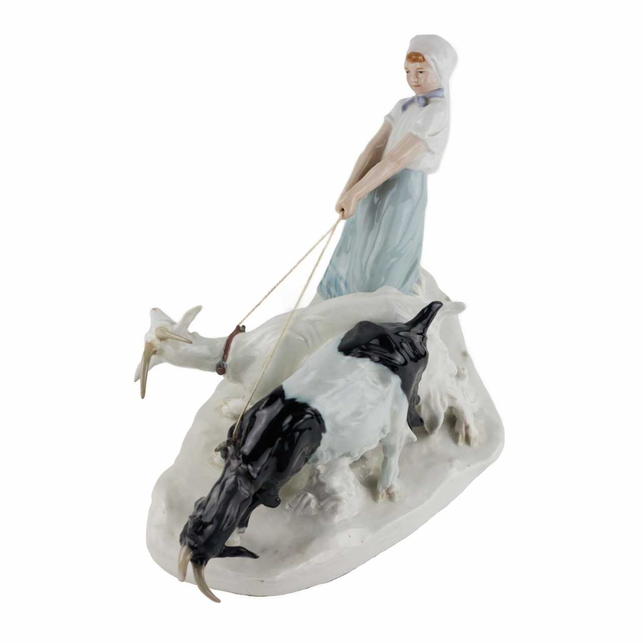 Composition en porcelaine Bergère aux chèvres. Pilz Otto .Meissen 1850-1924 Porcelain Hand Painted Art Nouveau Early 20th century