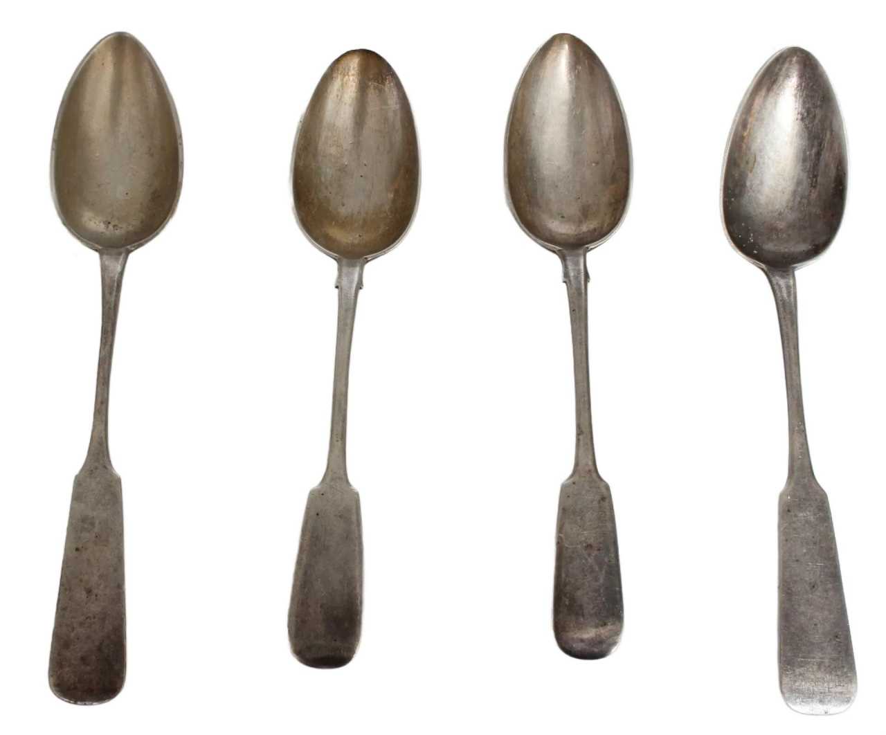 Début du XXe siècle. Russie. Argent, épreuve 84. Longueur 20,6 cm, 22 cm, 20,8 cm, 21,8 cm. Poids total 309 g.