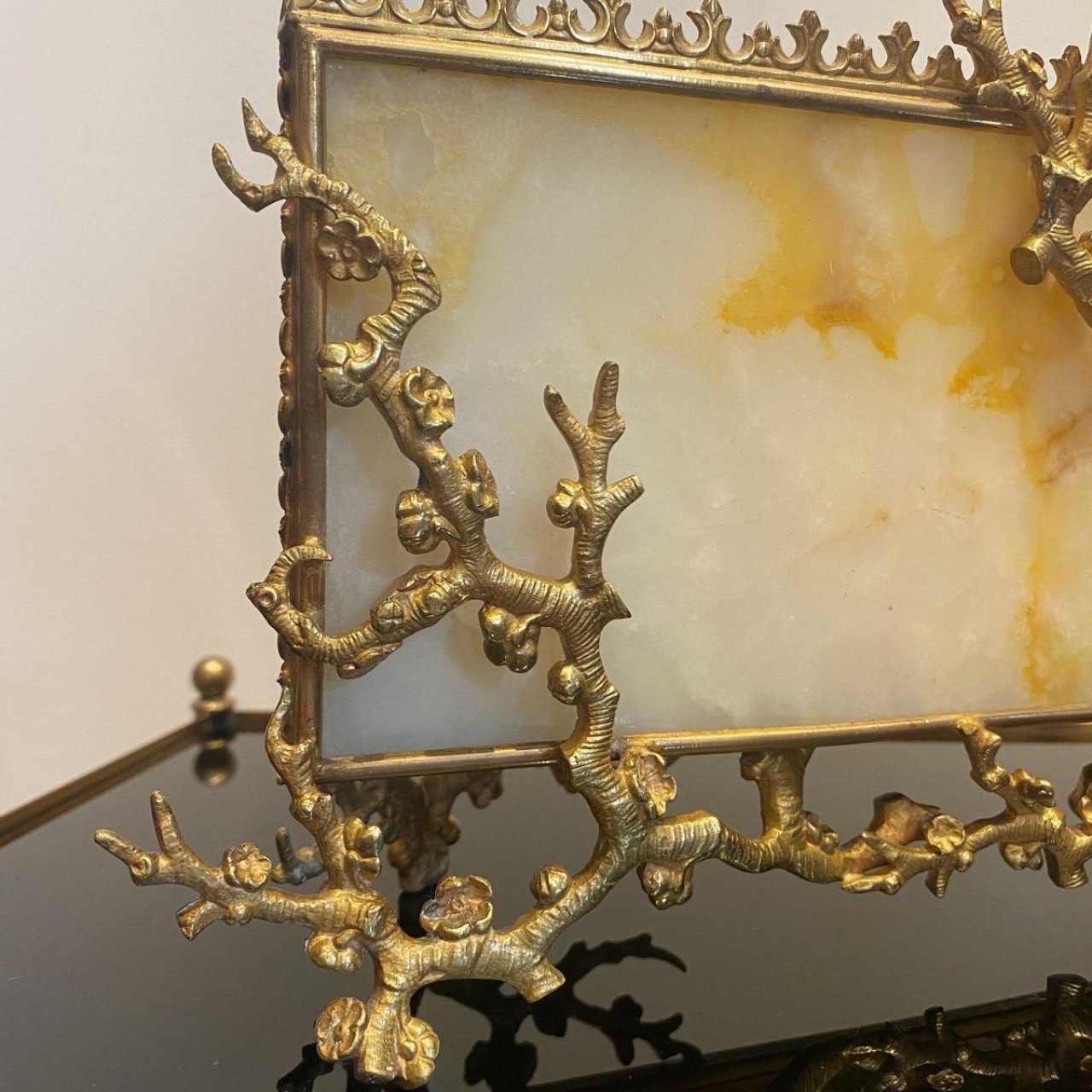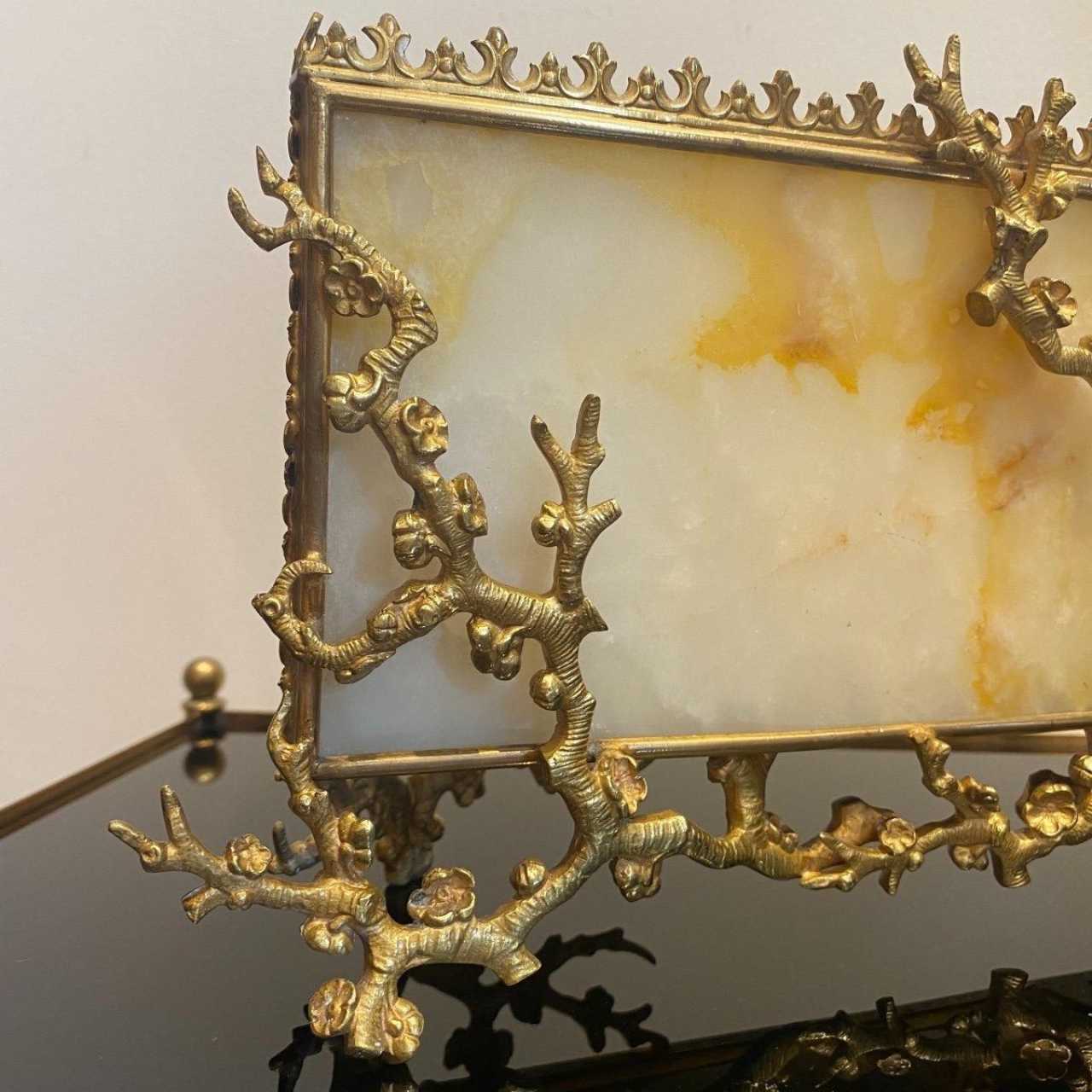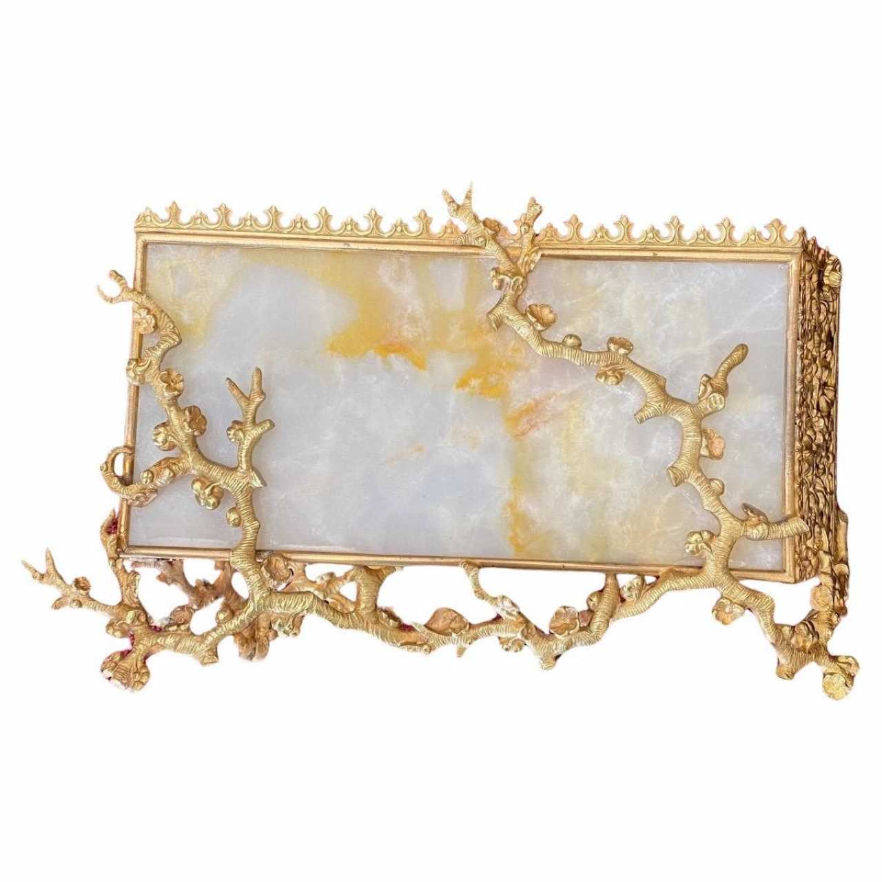 Gilded bronze and alabaster letter carrier in the Japanese style.The bronze tree branch decorations are very delicate. The alabaster plates on the two main sides give a very luminous look to this rare object.The sides are decorated with openwork gilded bronze plates with floral and plant motifs.ideal for an office or hallway.19th century.Perfect condition.