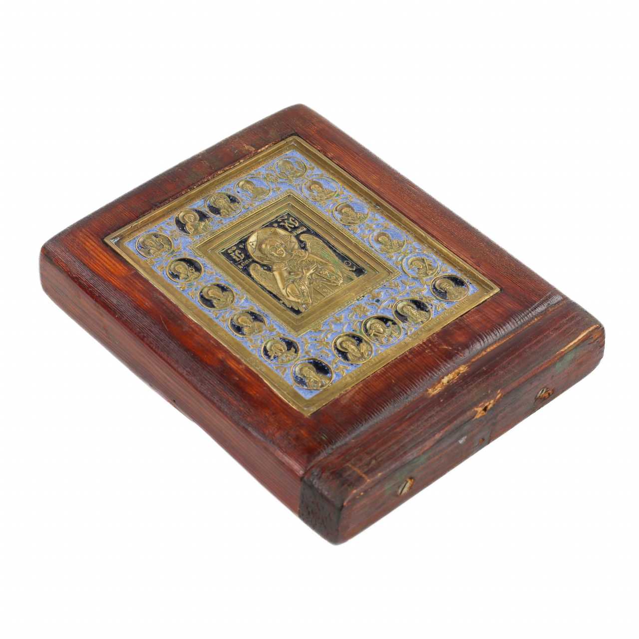 ICÔNE EN BRONZE COULÉ “LE CHRIST DU SAINT SILENCE” AVEC SAINTS SÉLECTIONNÉS RUSSIE FIN DU XIXe SIÈCLE Naturholz 19th century