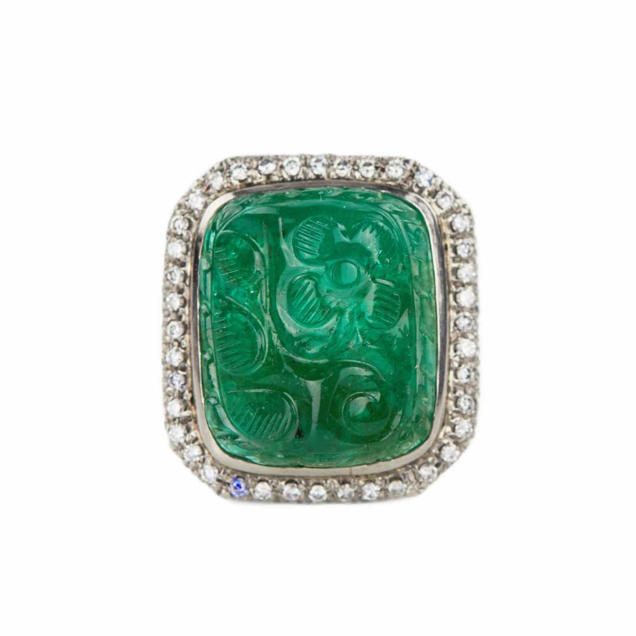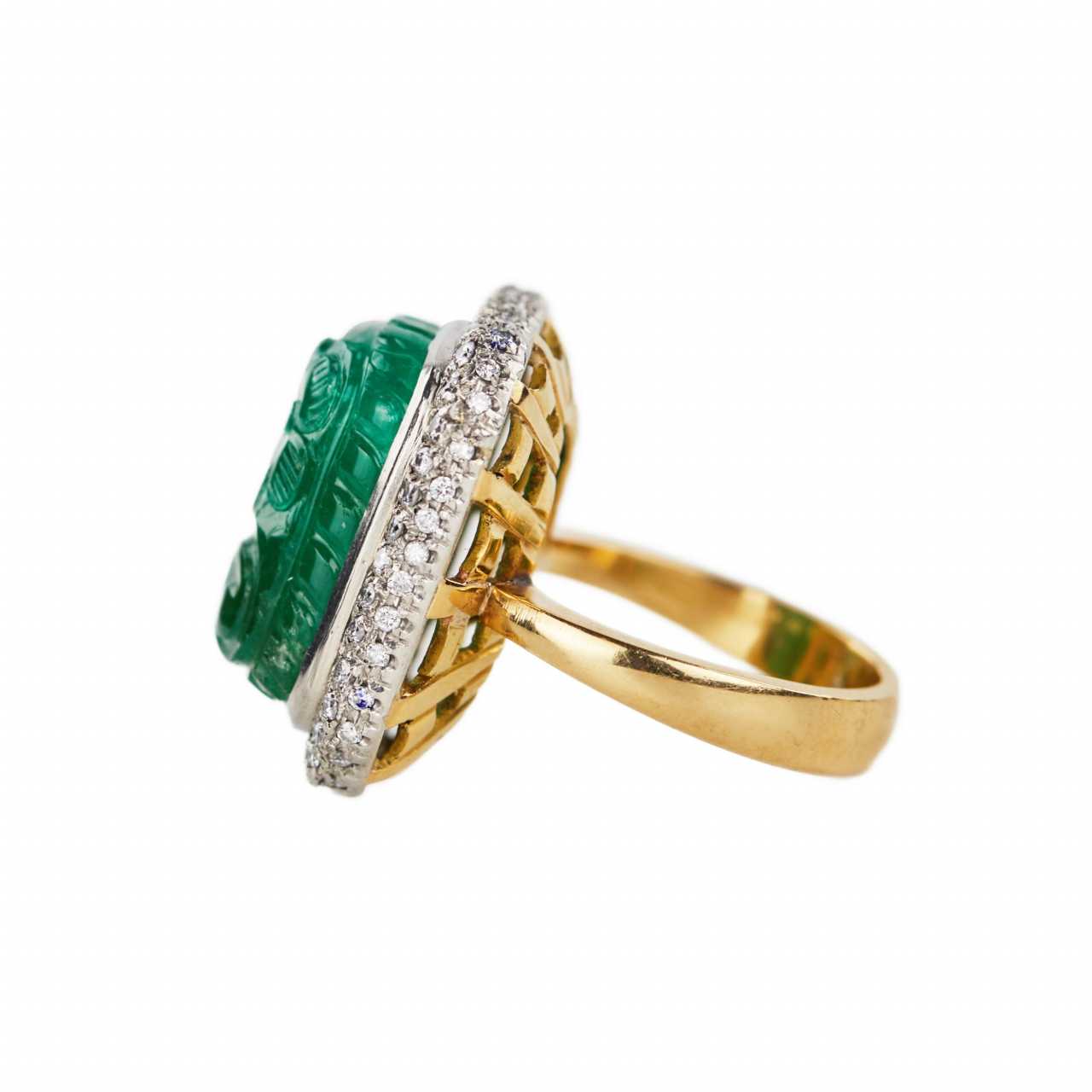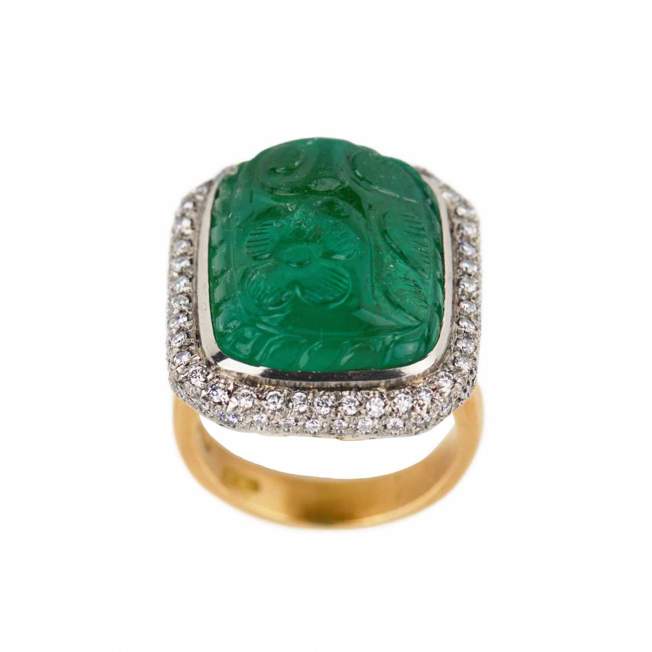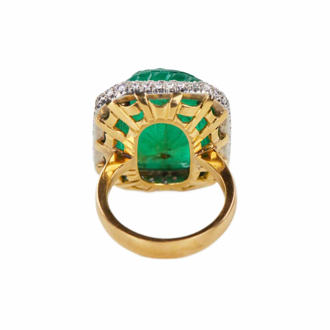 Impressionnante bague en or 18 carats avec emeraude et diamants. Diamanten 21th century