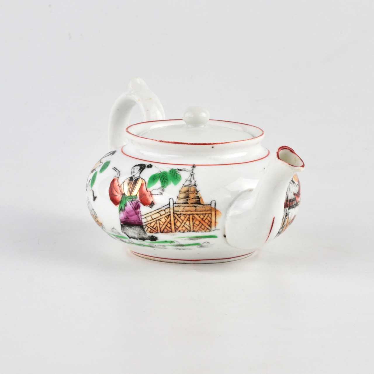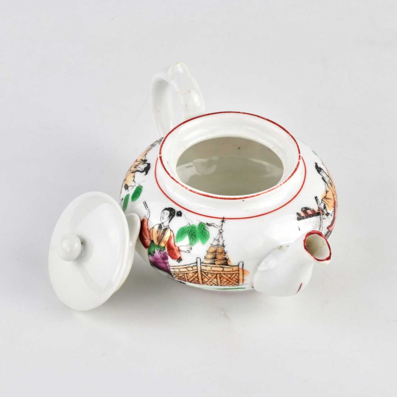 Theière en porcelaine de la manufacture Kuznetsov à Riga, à motifs orientaux.