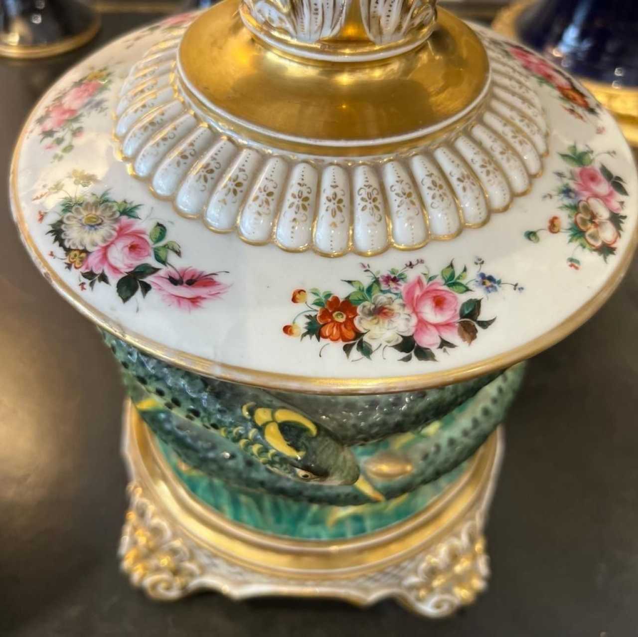 We are delighted to present you with this unique find- an exceptional pair of Parisian porcelain serving bowlsplatters, boasting an intriguing design with eels gracefully coiling around the bases. These 32 cm diameter platters are adorned with lovely floral bouquets, complemented by fresh gilding, presenting an overall flawless condition. These platters are perfect for decorating a table setting or serving as a decorative centrepiece on a console or dresser. Originating from the late 19th century, this pair exudes timeless elegance.