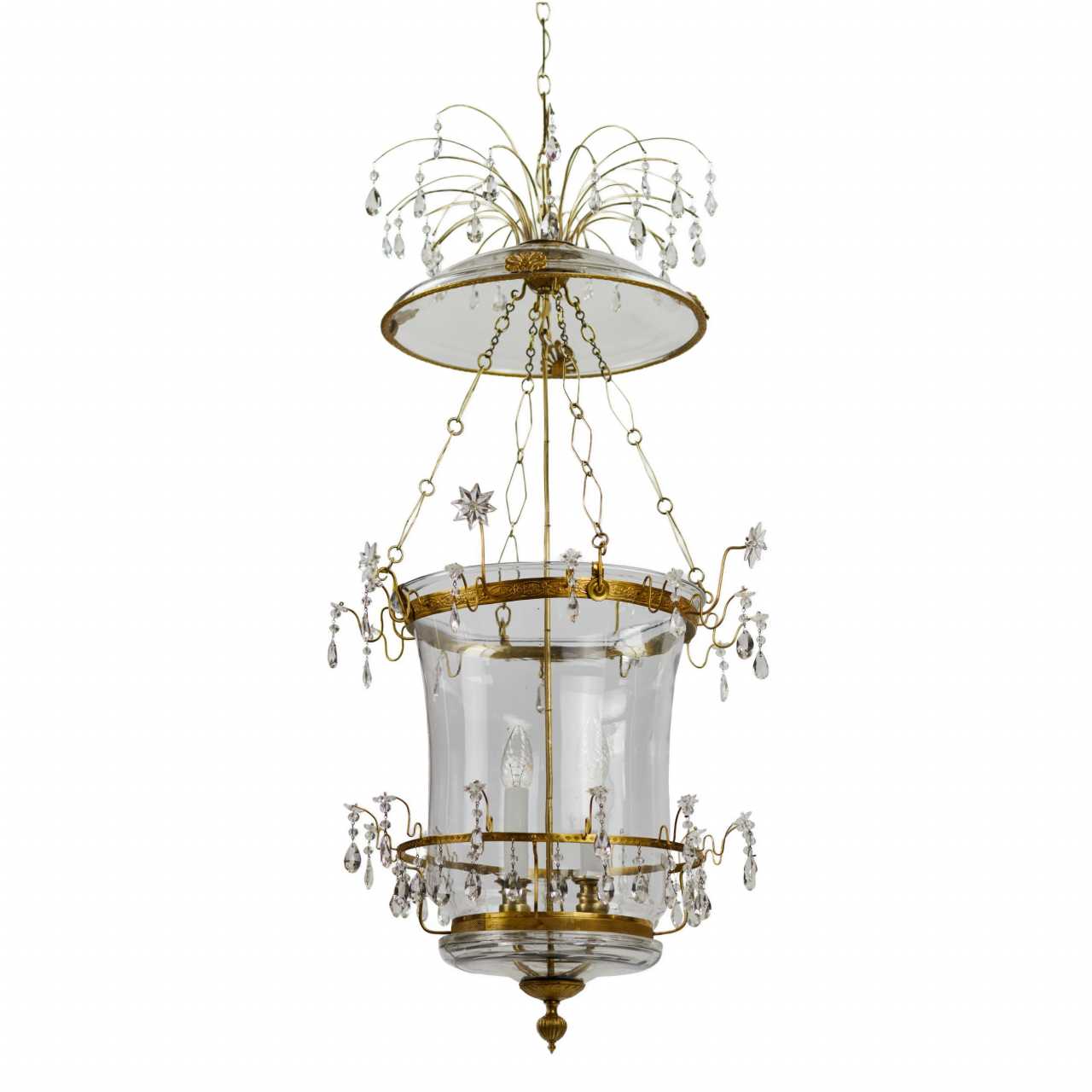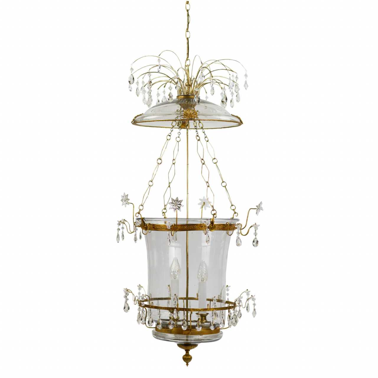 Lustre lanterne russe à deux lumières en cristal et ormolu. Russie debut du XIXe siècle. Bronze glass Early 19th century