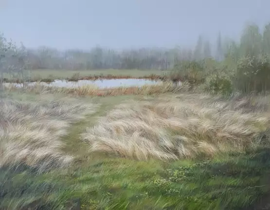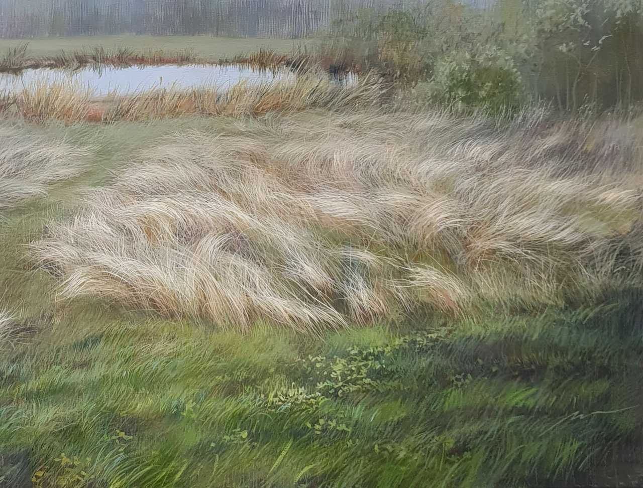 Auteur : Maija Muizniece, Sentier des cerfs, huile sur toile, format : 70 x 90 cm, année 2023.