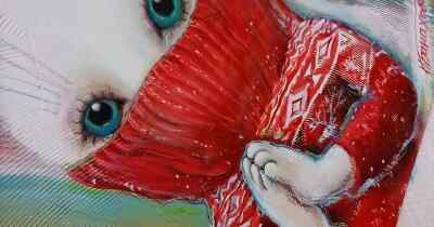 Кот с утёнком. Картина для детской. карандаши цветные Acryl современная работа абстрактная живопись Russland 2021
