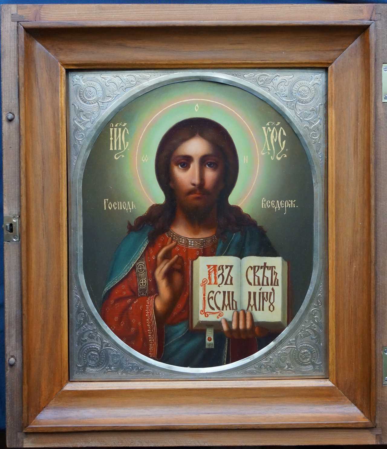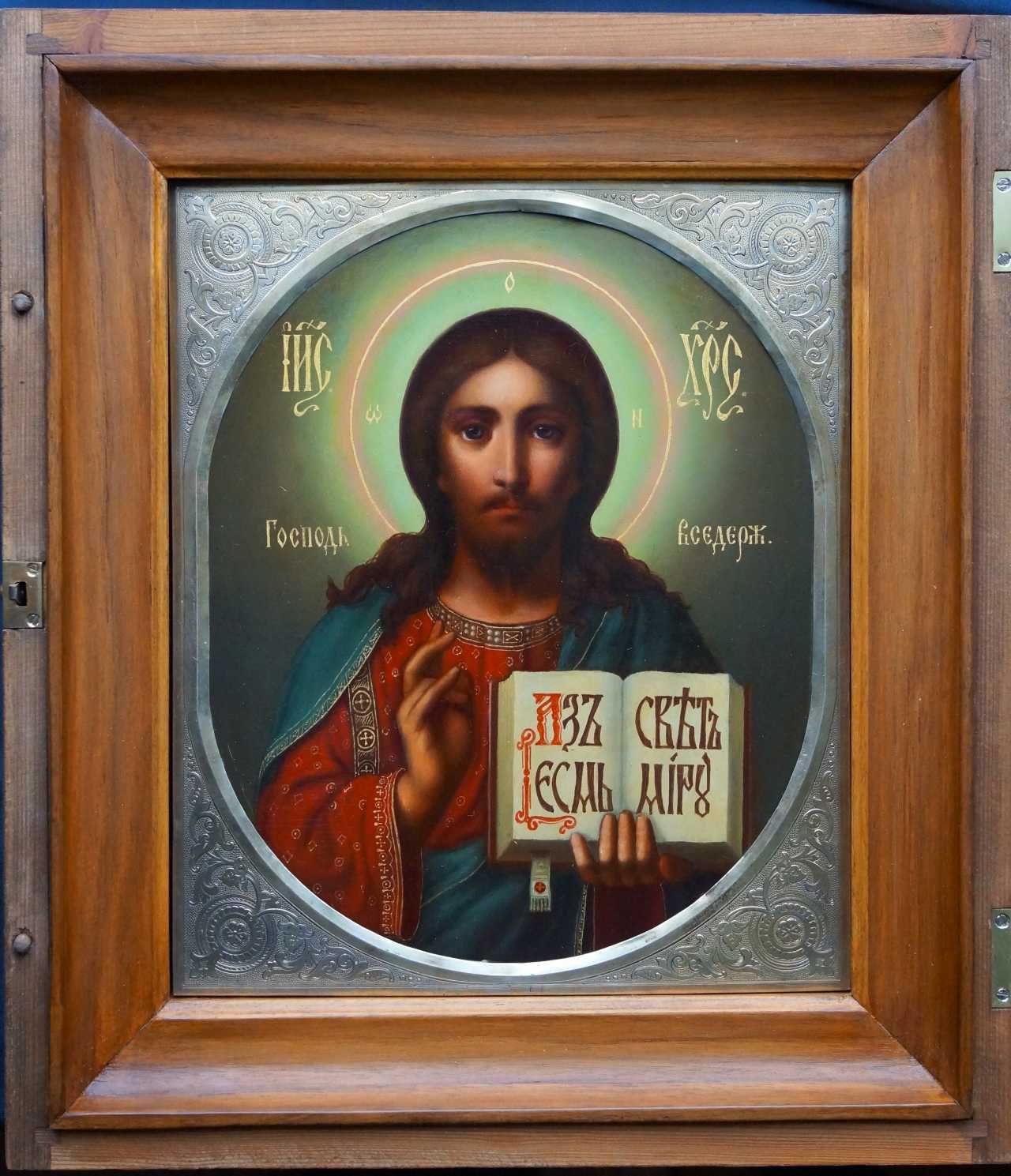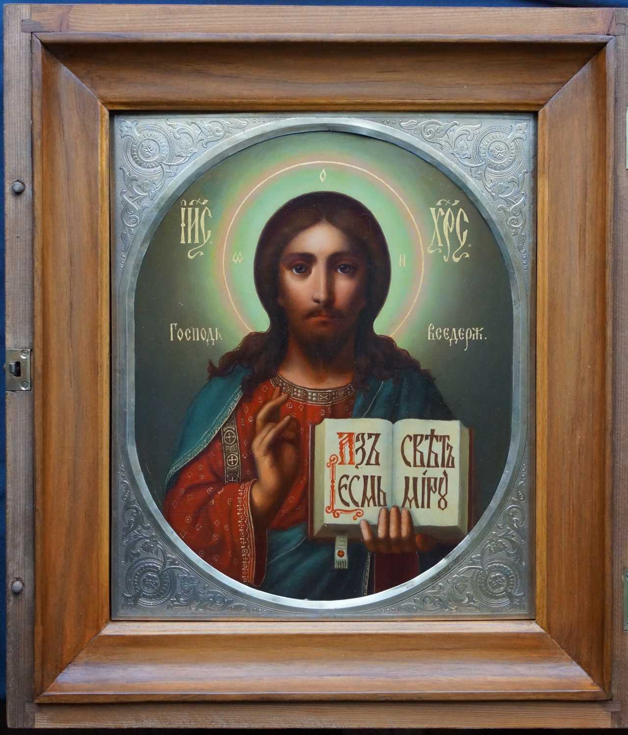 Образ Господа Вседержителя. Модерн Мастерская Сергея Жарова ЖАРОВ Сергей Иванович Naturholz Öl Русский модерн Икона Господа Вседержителя Russisches Kaiserreich Эпоха царствование императора Николая Второго 1899 – 1908 гг.