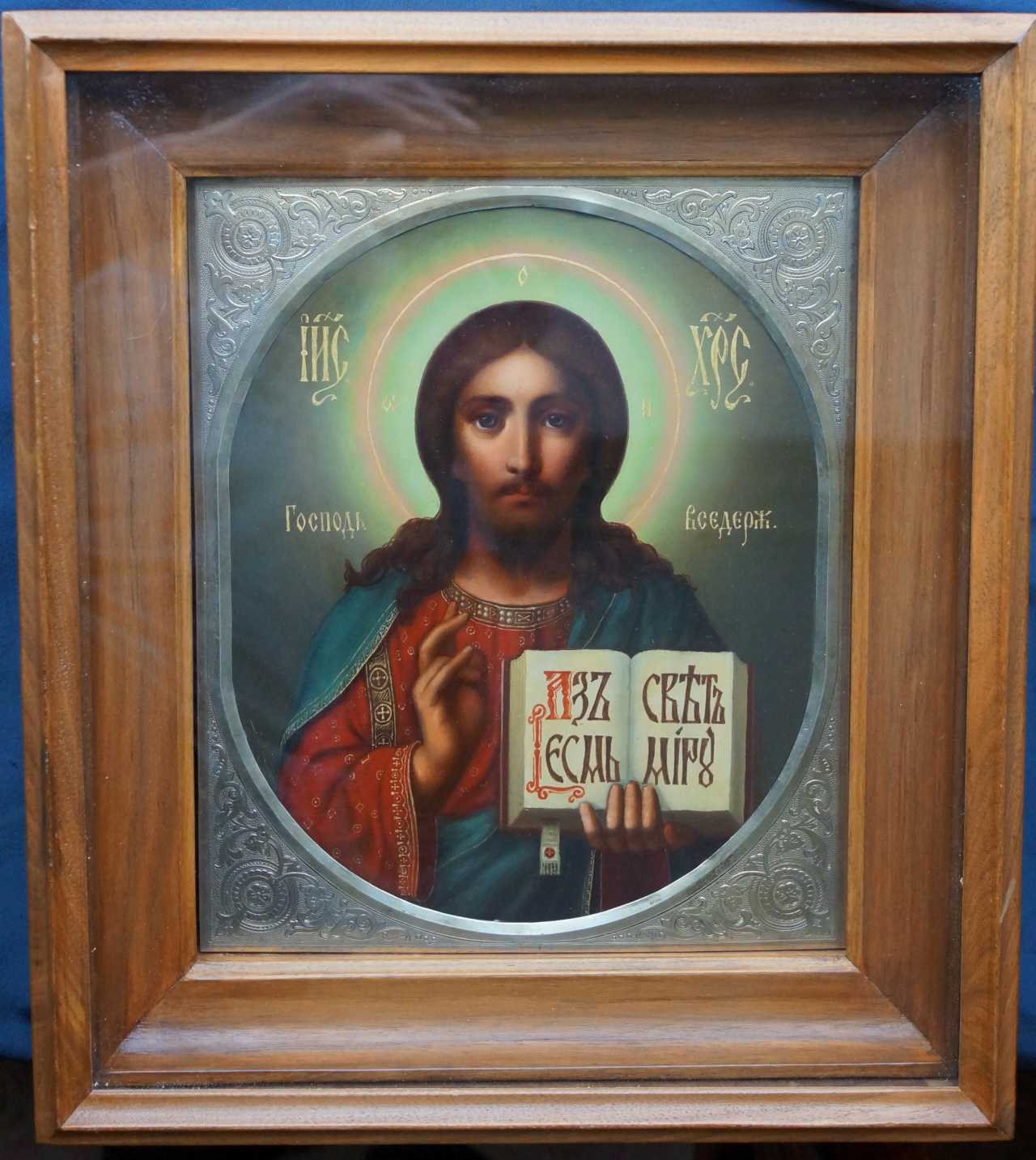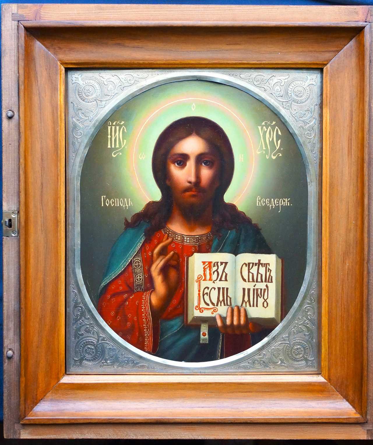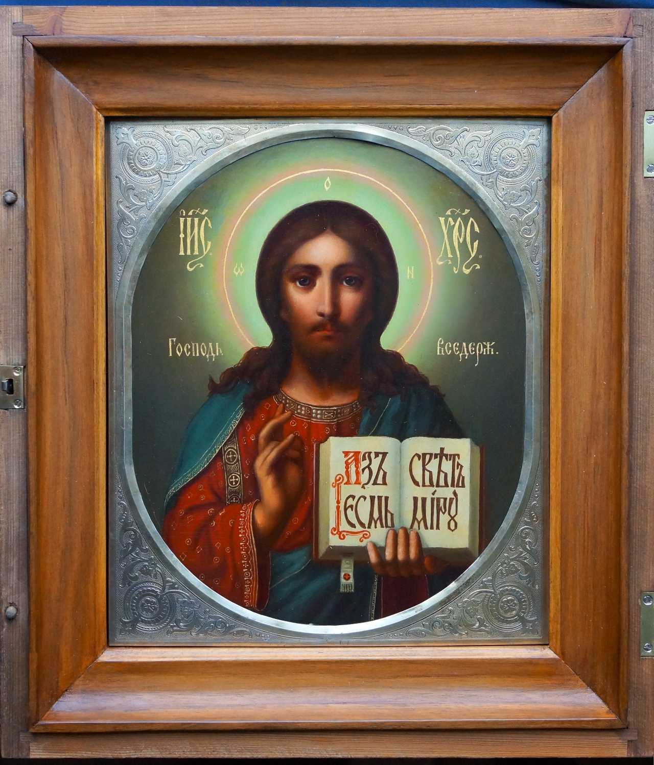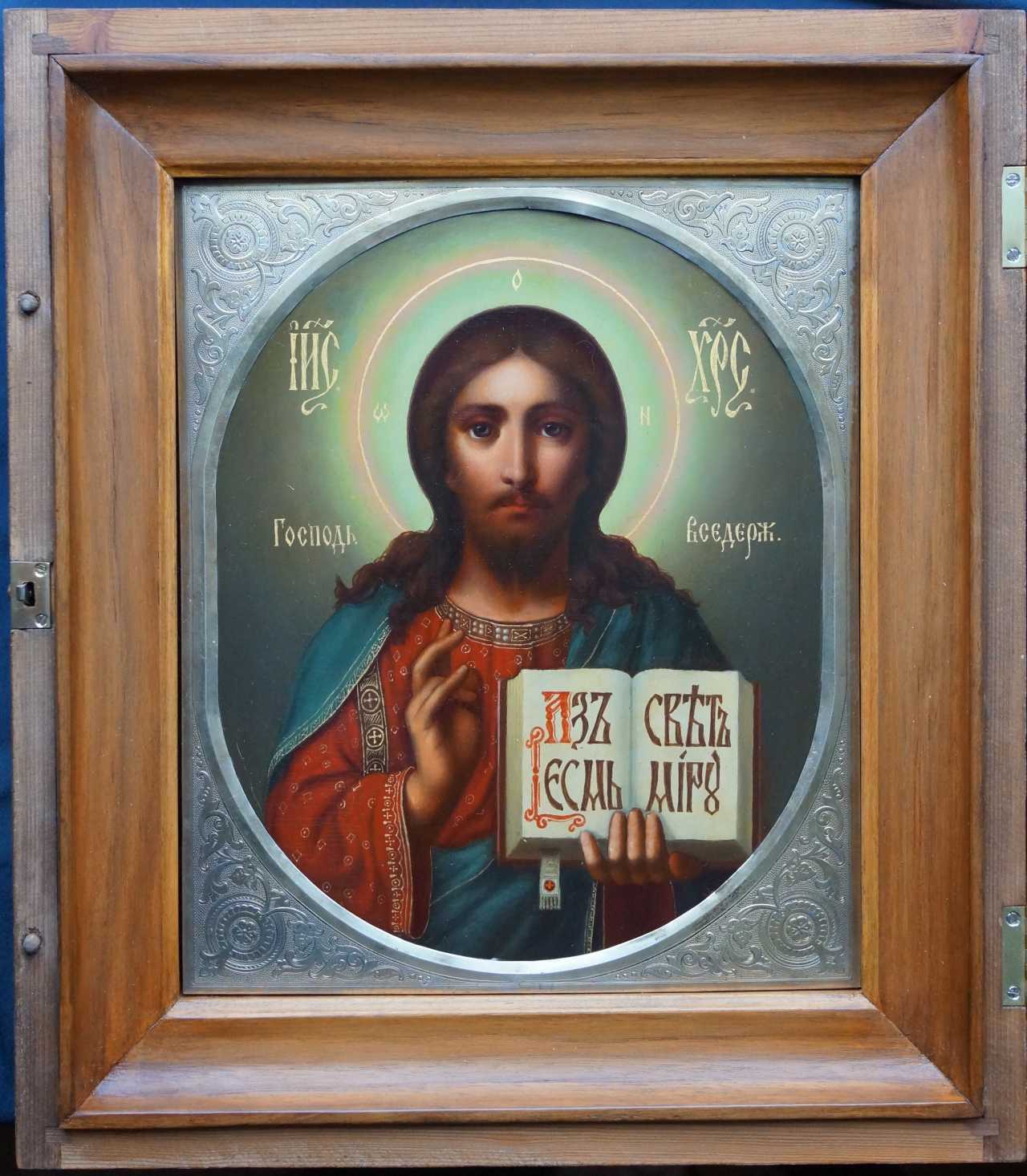 Образ Господа Вседержителя. Модерн Мастерская Сергея Жарова ЖАРОВ Сергей Иванович Naturholz Öl Русский модерн Икона Господа Вседержителя Russisches Kaiserreich Эпоха царствование императора Николая Второго 1899 – 1908 гг.