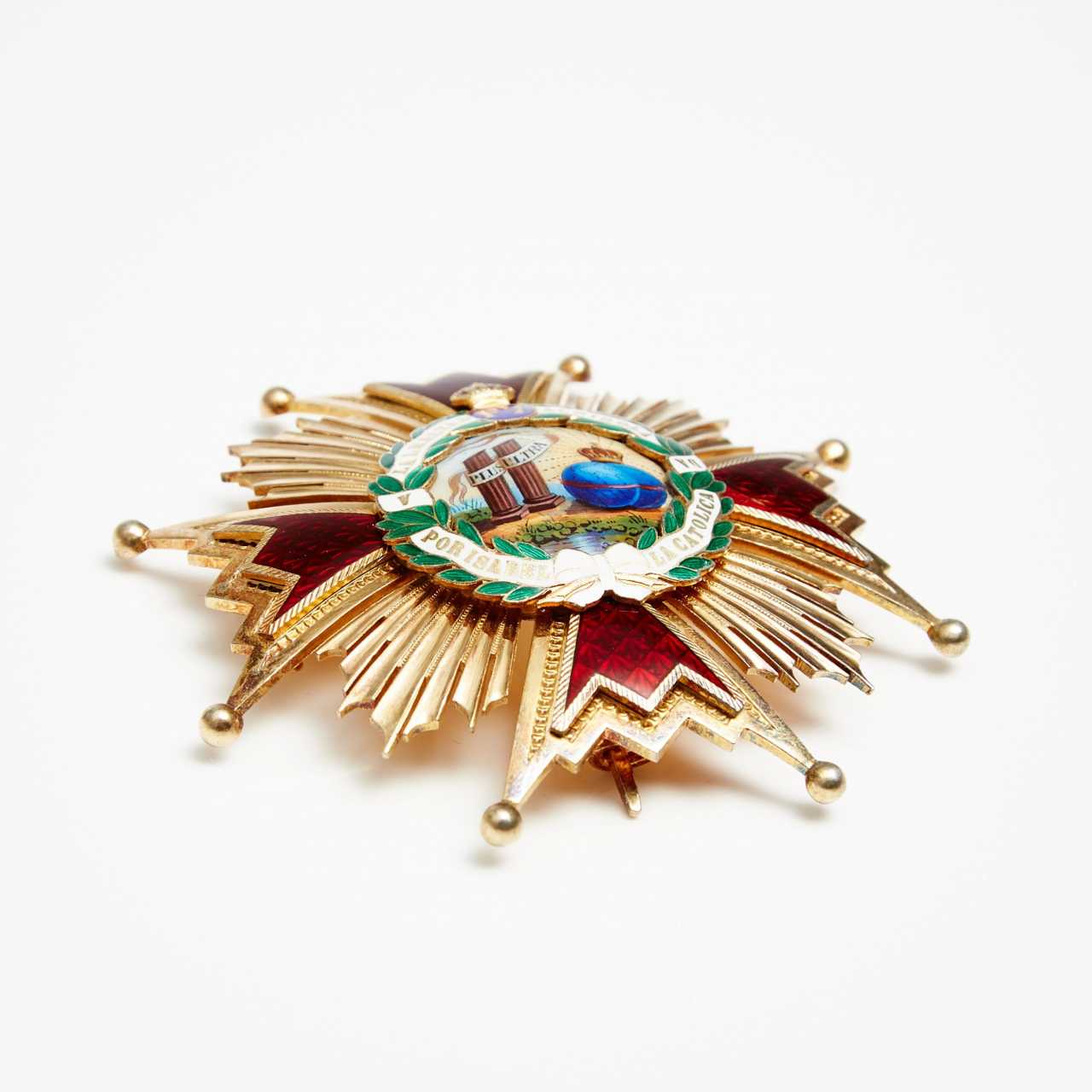 Ordre dIsabelle la Catholique, Espagne, (Orden de Isabel la Católica), etoile de la grande croix. Ordre civil du Royaume dEspagne, decerne pour services rendus à lEtat.Dimensions: hauteur 77x77 mm, poids 64,4 g. Argent, email, dorure.Lordre a ete etabli le 14 mars 1815 par le roi espagnol Ferdinand VII en lhonneur de la reine de Castille Isabelle Ier sous le nom original de Royal American Order of Isabella the Catholic, pour recompenser la demonstration de loyaute et de diligence dans la defense des possessions espagnoles en Amerique. Le 26 juillet 1847, par decret royal, lordre fut reorganise en tant que prix de la fonction publique et devint lOrdre dIsabelle la Catholique.