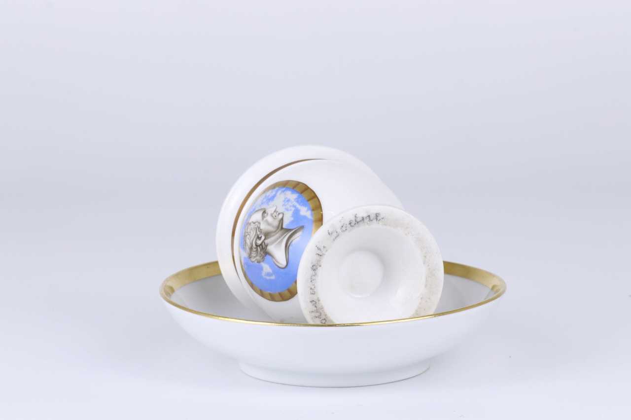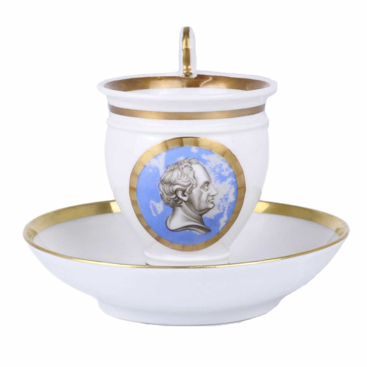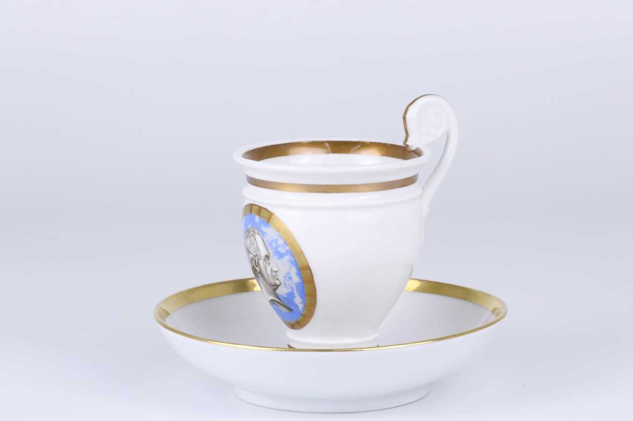 Paire de cafe en porcelaine à profil masculin dans un medaillon, Europe, XIXe siècle, H-11cm.