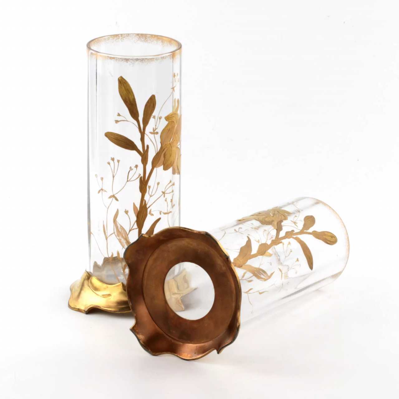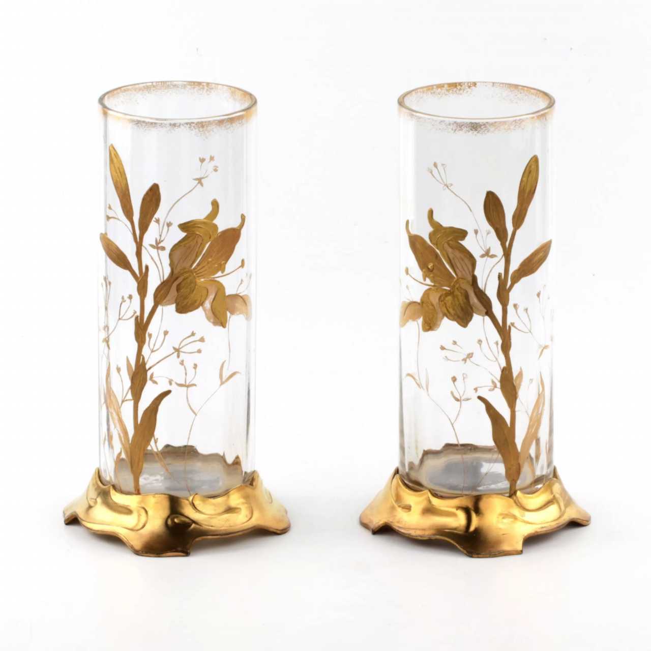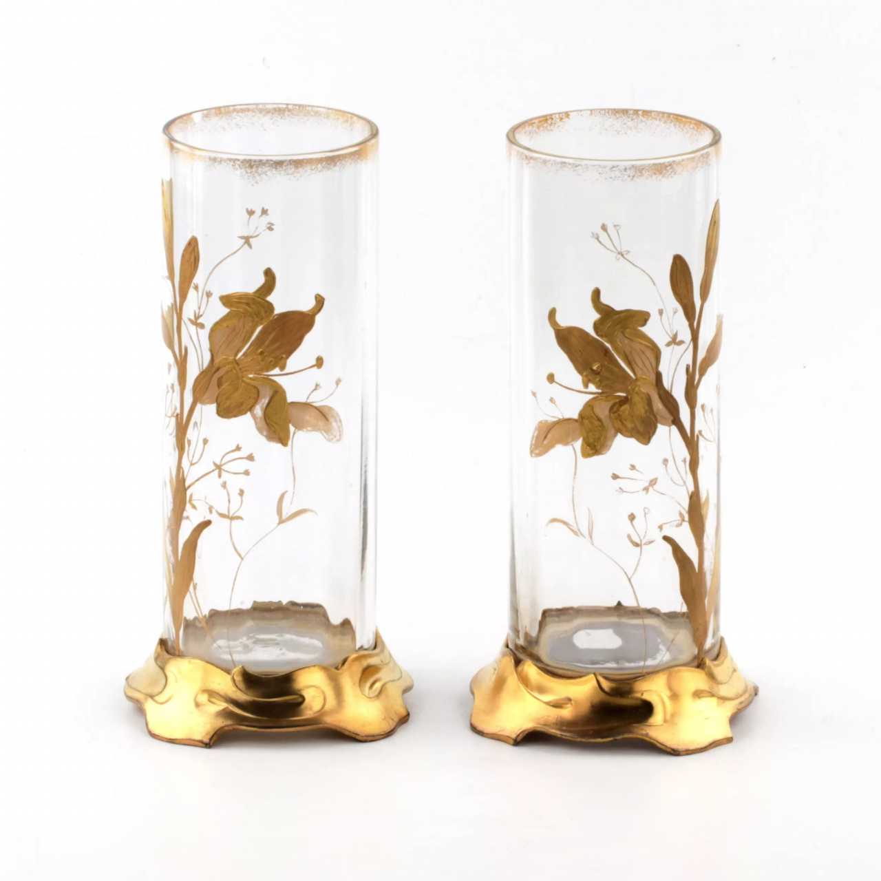 Paire de vases Art Nouveau Polychrome gilt Art Nouveau At the turn of 19th -20th century
