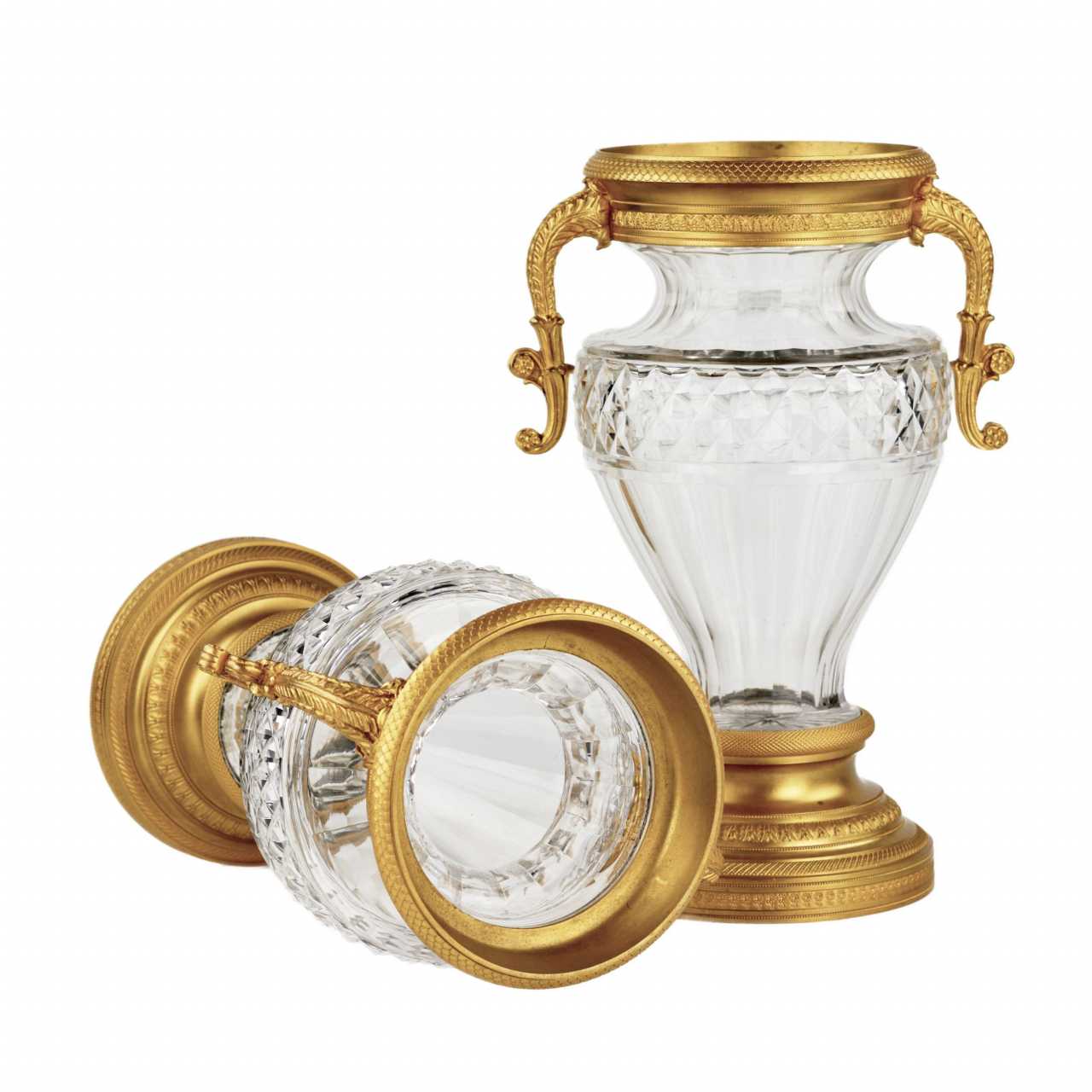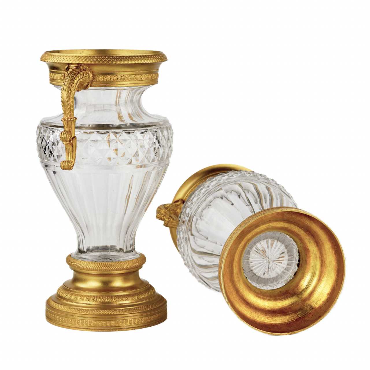 Paire de vases en cristal et bronze dore. Fin du 19ème siècle. Vergoldung Late 19th century