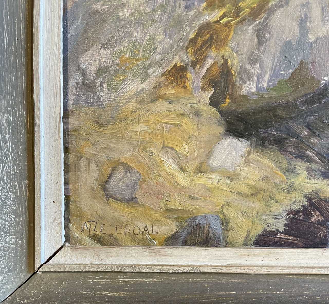 Gudbrandsdal Artiste paysagiste : Atle Urdal (1913-1988, Norvège) Médium : Huile sur plaque Dimensions : 49 x 40 cm.