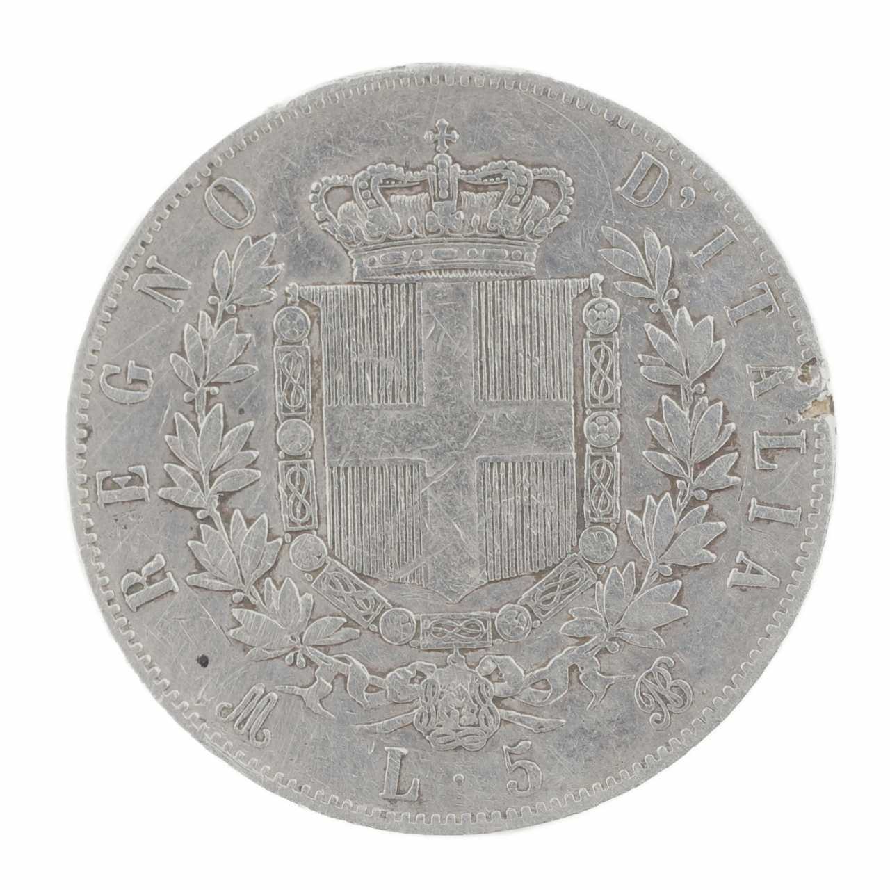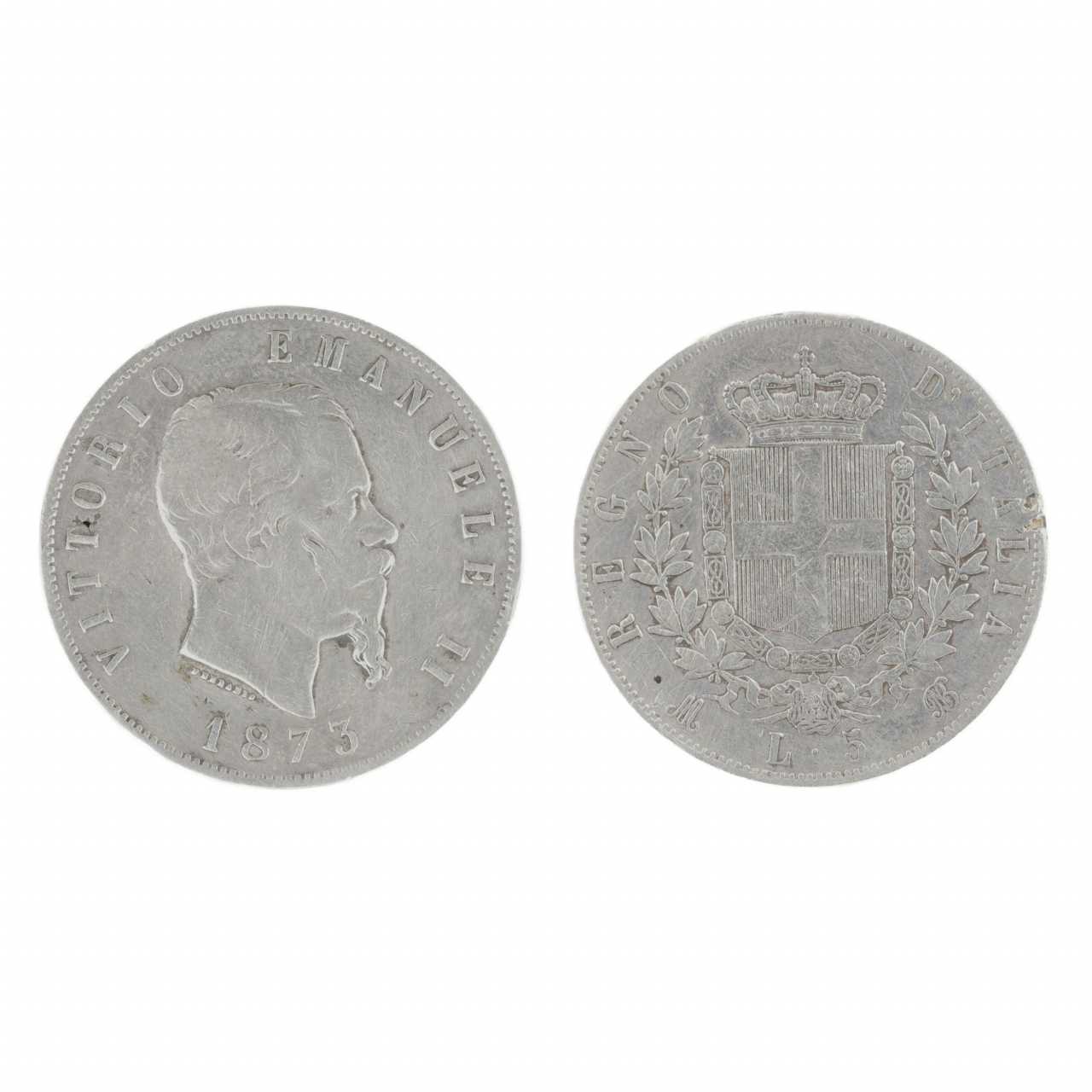 Pièce d&39;argent de cinq lires. Italie 1873. Silber 19th century