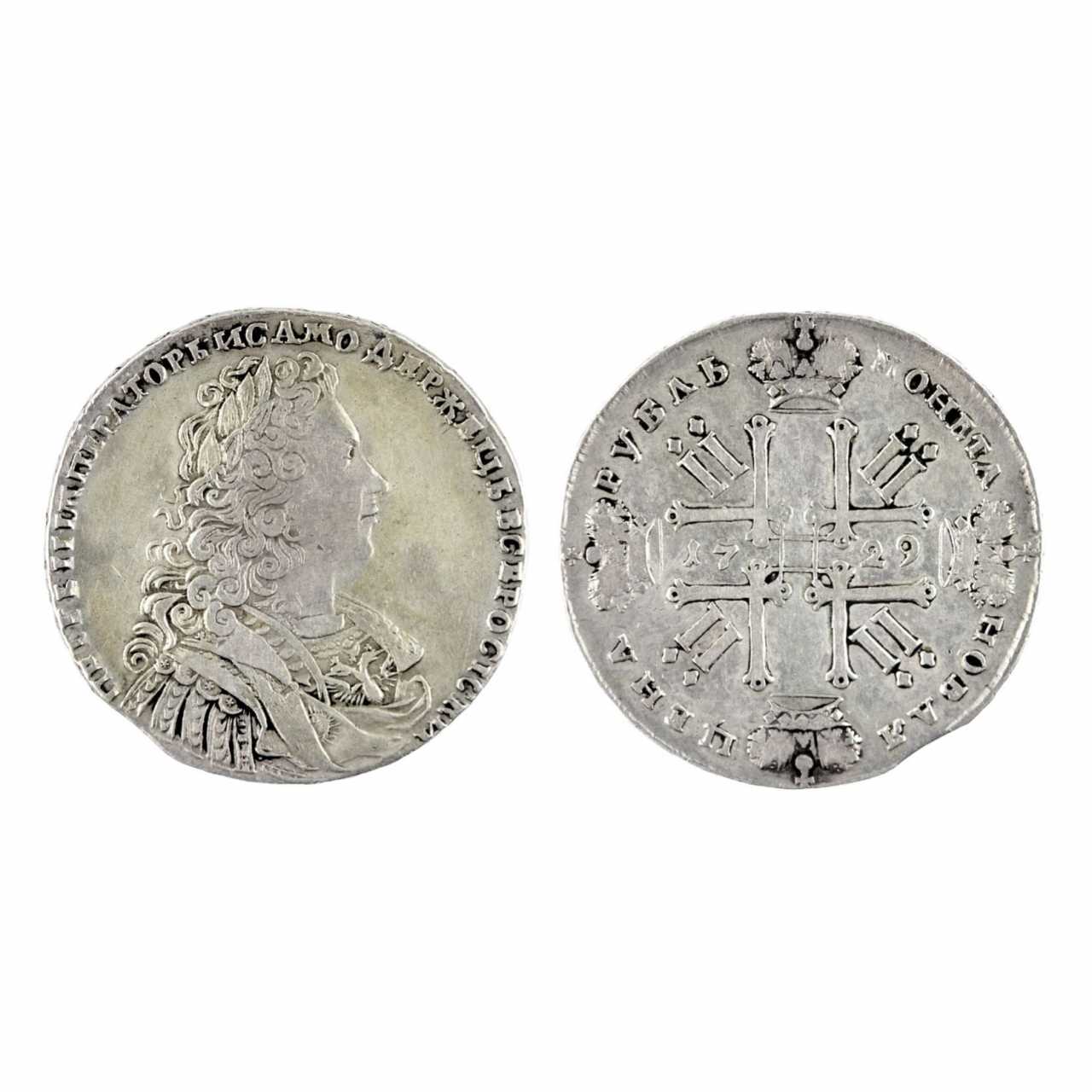Rouble d`argent de Pierre II en 1729. Silber Baroque Early 18th century