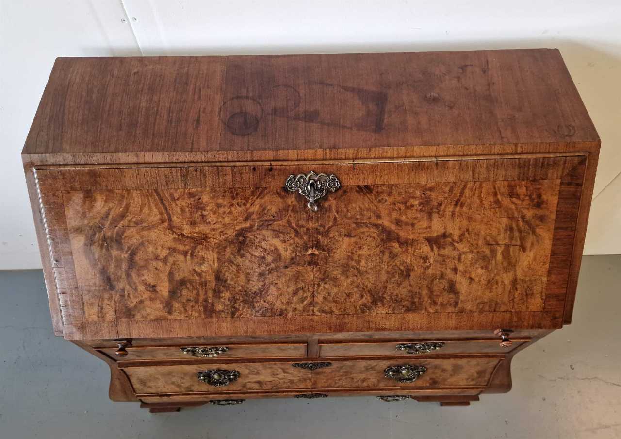 Secrétaire ancien.Placage de noyer, chêne.Allemagne.Années 1860.Dimensions : hauteur 100cm ; longueur 104cm ; profondeur 50cm.