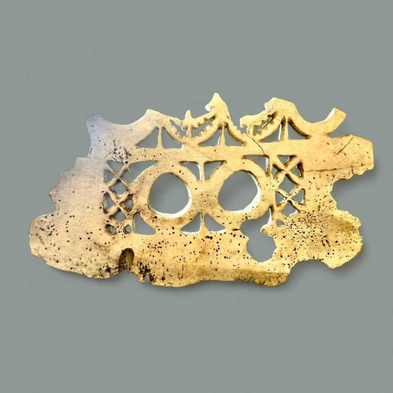 Objects crafted from the shell of the giant Tridacna clam, also known as the fossilized giant clam, held great value among numerous Melanesian peoples. The artistry of working with fossilised Tridacna reached its zenith in the Solomon Islands, particularly evident in the creation of intricate and prestigious objects like the barava – perforated plates originating from the western Solomon Islands.While some barava designs feature geometric patterns, many incorporate stylised human figures intertwined with shapes reminiscent of faces, characterised by spiral eyes and smiling mouths adorned with tiny teeth. Traditionally, barava were closely linked with burial sites, often used to embellish structures housing the skulls of esteemed individuals or enemies, or placed atop graves. In the past, certain barava even played a role in vovoso, potent charms worn aboard war canoes during headhunting expeditions, safeguarding the crew and ensuring successful endeavours.The Didier Zanette Collection offers insight into these remarkable artefacts. Additionally, a selection of other 19th-century objects crafted from giant clam shells remains available.For further exploration of this fascinating subject, refer to the book:Tridacna Gigas: Objects of Prestige in Melanesiaby Éric Lancrenon and Didier ZanetteISBN: 9782915654929Publisher: Au vent des îlesPublication Date: November 16, 2011Series: Pacific CulturePages: 277Dimensions: 29.5 x 23.5 x 2.9 cm