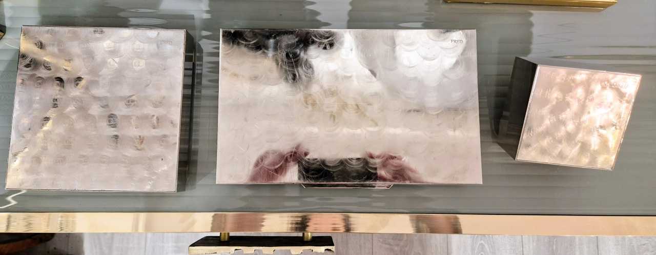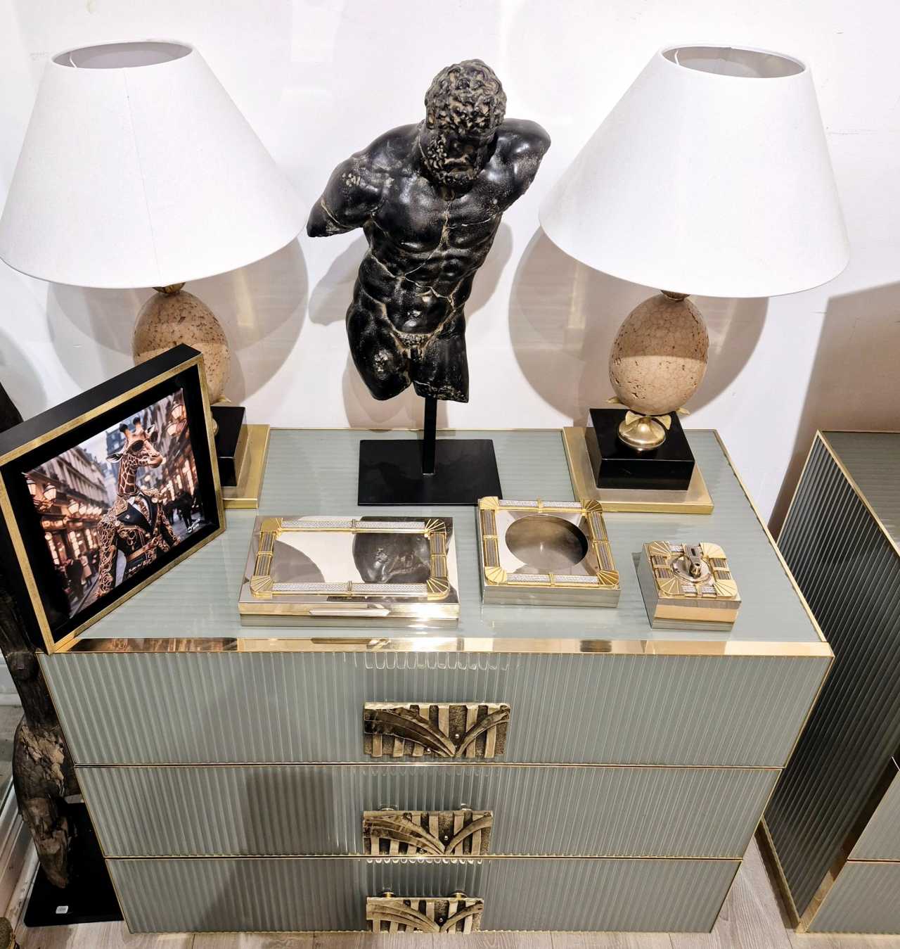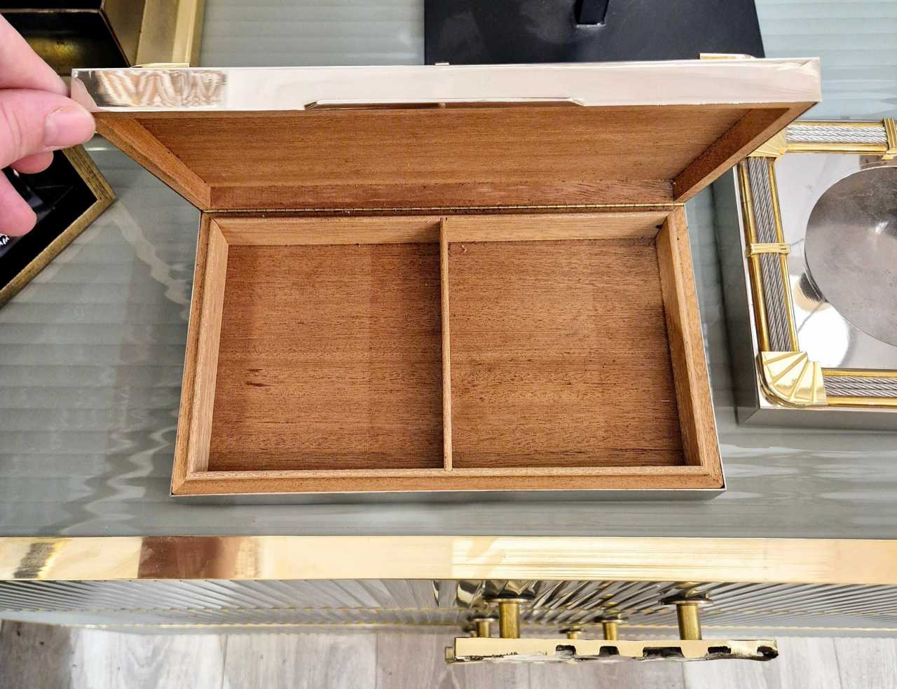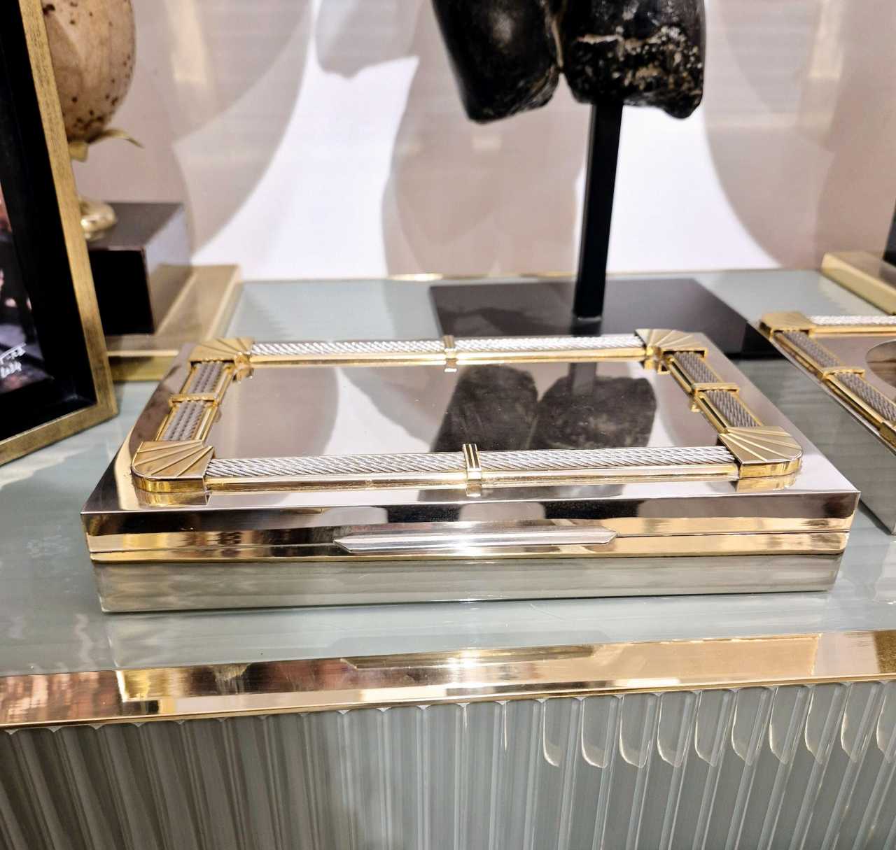 Smokers set signed FRED from the Force 10 collection, consisting of a lighter, ashtray and cigar box in silver-gilt metal with the brands typical stylized rope-style braided steel decoration. all three pieces are signed FRED.A very rare set, unobtainable on the market and in very good condition: the lighter works perfectly, dating from the 1960s1970s.Part dimensions:LighterWidth 9.5 cmDepth 9.5 cmHeight 5.5 cmAshtrayWidth 16 cmDepth 16 cmHeight 3.5 cmCigar caseWidth 25 cmDepth 15 cmHeight 4.5 cmTHE FORCE 10 COLLECTION FROM FRED“One day, my eldest son had the amusing idea of braiding marine cables, attached at both ends by rivets, to make a bracelet that he gave to his wife. For his birthday, he imagined the same bracelet with a gold clasp in the shape of a marine snap hook. To make it even more precious, he added links along the length of the bracelet. Thus was born the first jewel in the Force 10 line in 1966. Carrying the passion for the sea and sailing of Fred Samuel and his family, the Force 10 bracelet is today one of the emblems of the Maison. The Force 10 collection has become a symbol of courage, perseverance and self-confidence.By daring to orchestrate this unexpected meeting of a braided steel marine cable and a gold shackle, two materials that until then had seemed to oppose each other, FRED has made jewelry history. A formidable avant-garde vision, it has since given rise to a collection that is both casual and jewel-like.Synonymous with great resistance, strength and willpower, the Force 10 collection reveals precious know-how through the solid, meticulous braiding of its cable. This collection is a natural extension of the iconic jewels sporting values, character and powerful identity. And they reflect a constant thirst and joie de vivre, a taste for freedom, the great outdoors and adventure.The Force 10 collection is a manifesto of style and audacity for the determined and passionate, for those who stop at nothing, not even the limits of the horizon.