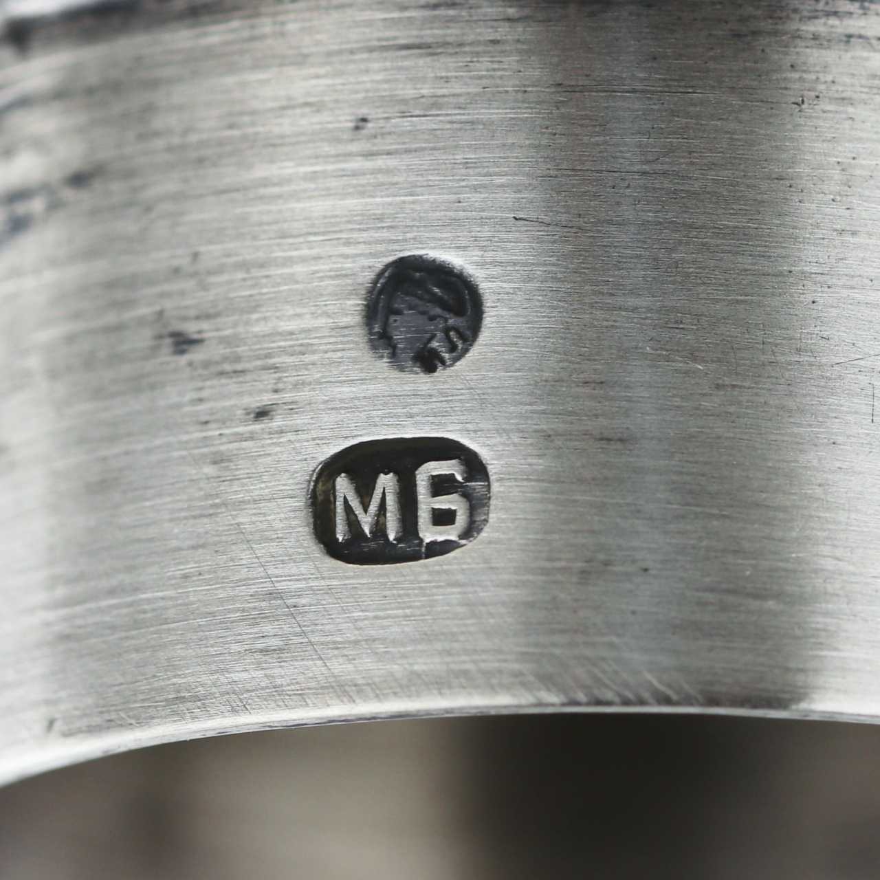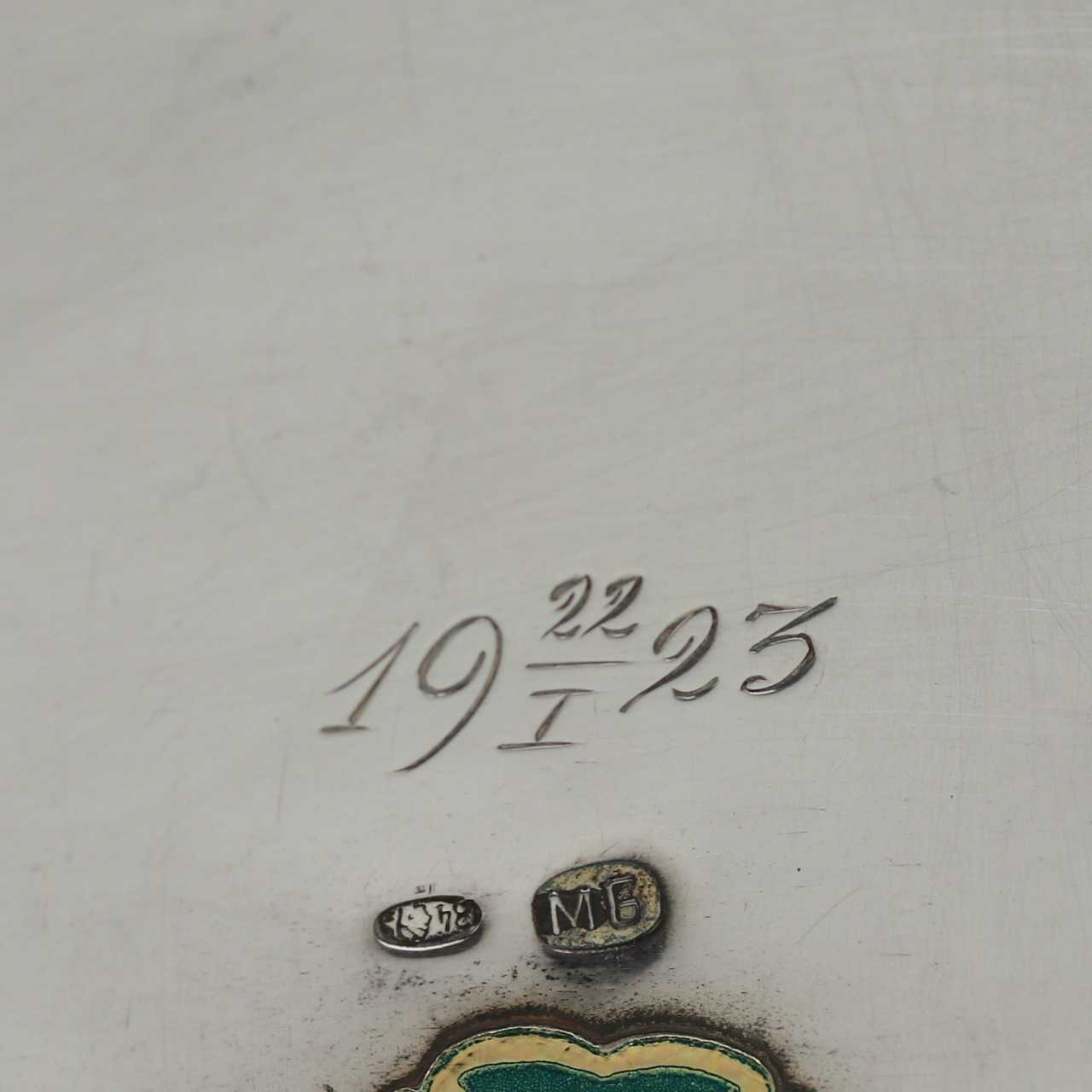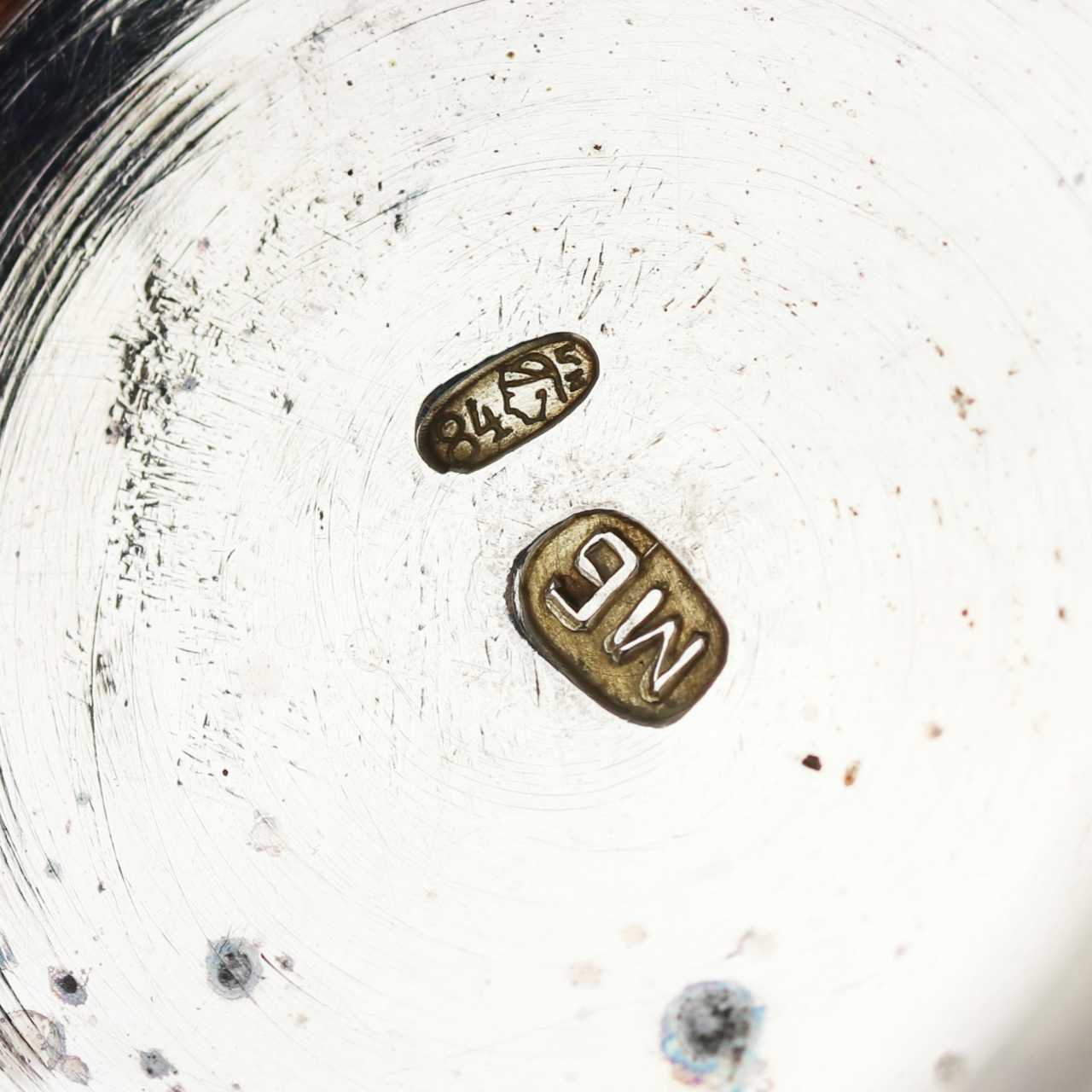 Élégante boîte à thé carrée en argent, fabriquée à Moscou entre 1896 et 1908. La surface du produit est décorée d`une gravure raffinée dans le style oriental, particulièrement populaire à l`époque de l`Art Nouveau. Le devant présente une silhouette féminine gracieuse en robe traditionnelle chinoise, entourée de motifs de fleurs de lotus et de lignes végétales fluides. Français La combinaison habile de l`artisanat de joaillerie russe et de l`influence orientale confère à la boîte à thé une apparence et une valeur artistique uniques. Poinçons : Le poinçon du maître avec les initiales MB (Belousov Maxim Vasilievich), réalisé en cyrillique, ainsi que le poinçon d`essai de Moscou de la période 1896-1908. Dimensions : Hauteur : 13 cm Largeur : 8 cm Poids : 336 grammes Informations historiques : Belousov Maxim Vasilievich est un célèbre maître joaillier moscovite, propriétaire d`un atelier d`argenterie, actif dans la période 1899-1908.