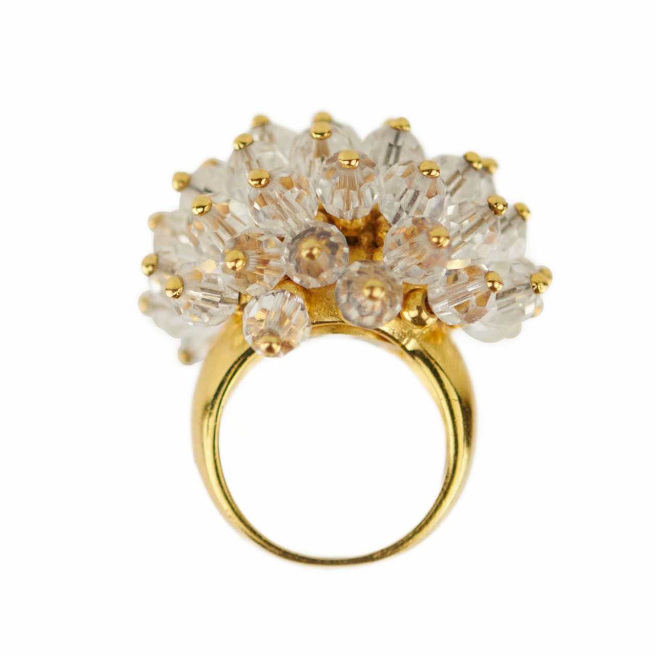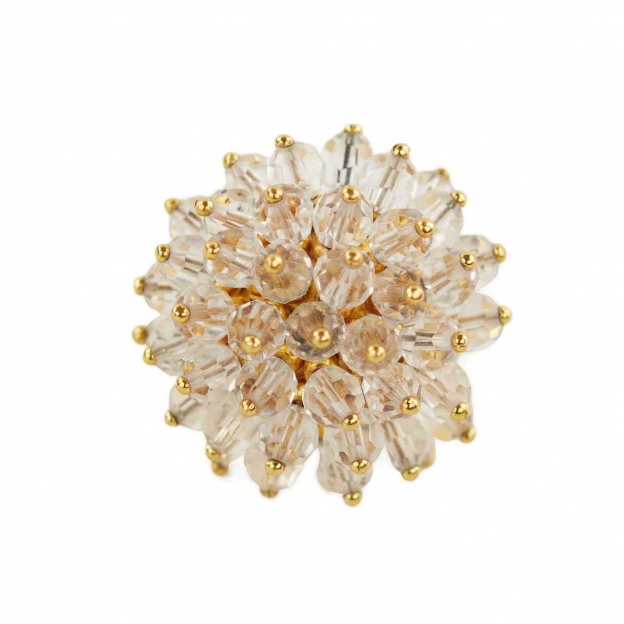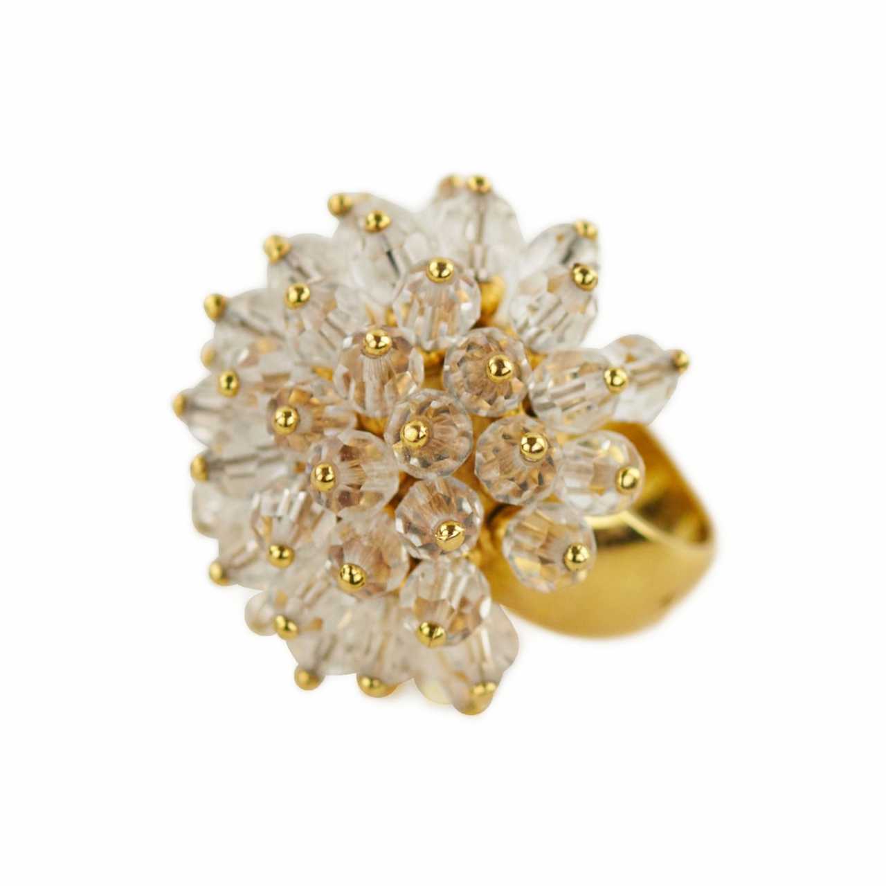 Une bague spectaculaire avec quartz en forme de pissenlit en fleurs. Gold-plated metal 21th century
