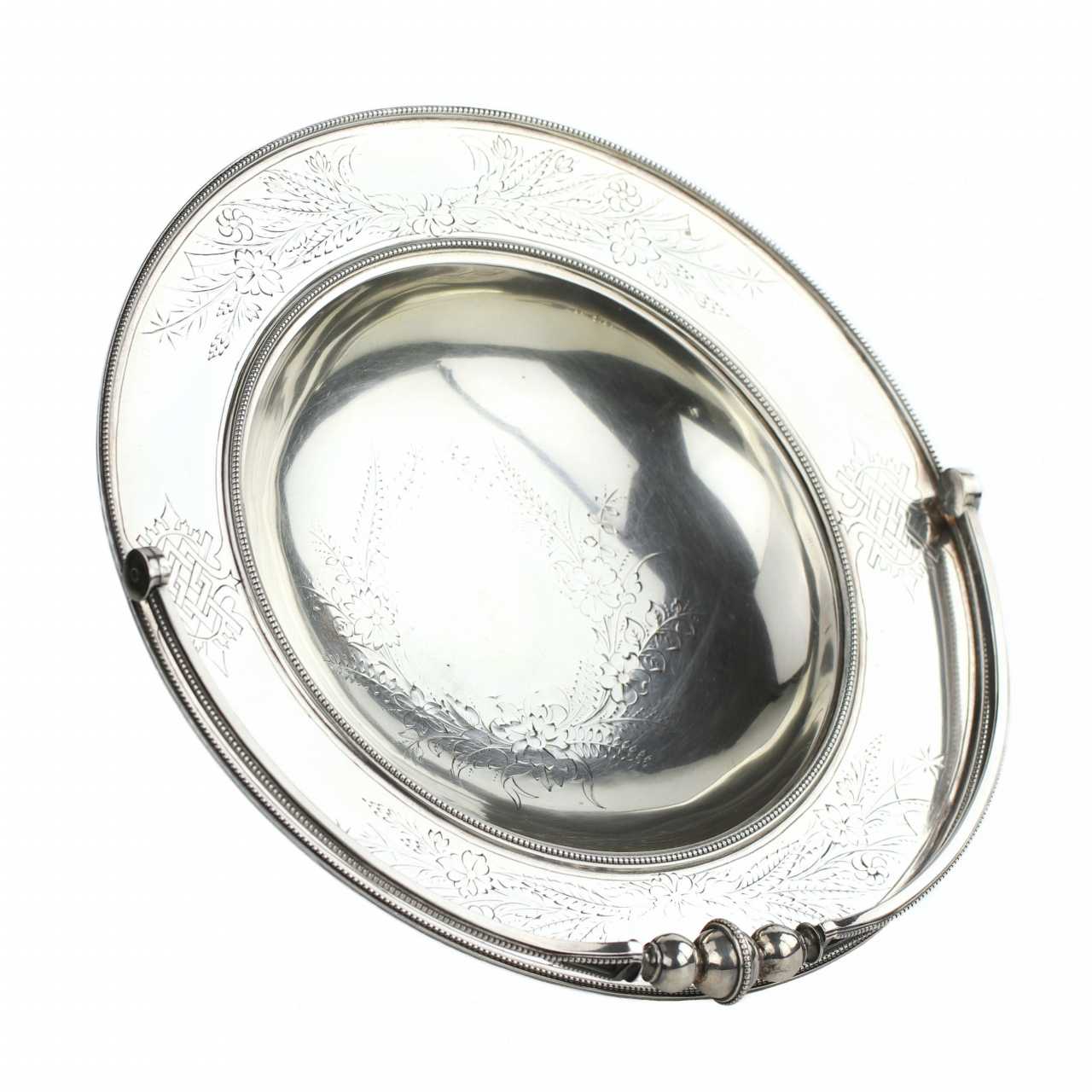 Un exquis bol à bonbons en argent créé en 1887 par l`orfèvre exceptionnel qui travaillait pour la maison Fabergé, Erik August Kollin, un éminent représentant de l`école de joaillerie russe du XIXe siècle. Le vase se distingue par ses proportions harmonieuses, ses contours élégants et l`exécution magistrale des éléments décoratifs. La décoration principale est un ornement exquis réalisé selon la technique du dessin au burin. Le champ central est décoré d`une composition symétrique de guirlandes de fleurs stylisées, se prolongeant en douceur sur les côtés, encadrées de perles imitant des perles, avec des champs décorés de motifs panslaves et de bouquets de fleurs. L`anse du vase, décorée d`éléments sphériques, confère au produit sophistication et harmonie des formes. Poinçons: Nom du maître: EK - Eric Collin. Poinçon de contrôle de Saint-Pétersbourg avec la date de 1887, titre en argent : 84 et les initiales IE – maître de contrôle inconnu, actif dans la période 1870-1891, armoiries de la ville de Saint-Pétersbourg. Dimensions : Hauteur : 23 cm, Diamètre : 25,5 cm. Poids : 671 g. Contexte historique : Erik August Collin (1836–1901) était un joaillier finlandais connu pour sa collaboration avec la société Carl Fabergé. De 1870 à 1886, Collin travaille comme maître artisan chez Fabergé, où il crée des bijoux de haute qualité. L`une de ses œuvres célèbres est un étui à cigarettes associé à l`empereur Alexandre III, fabriqué par la firme Fabergé. Les œuvres d`Eric Collin font partie des collections de musées tels que les musées du Kremlin de Moscou et l`Art Institute de Chicago.