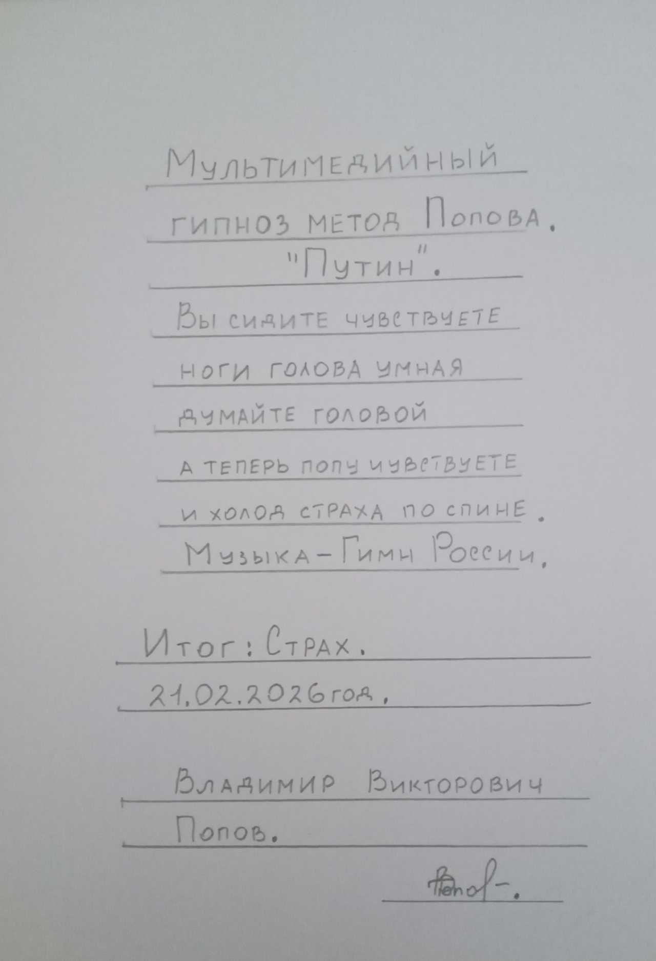 На обратной стороне инструкция к этому рисунку в виде "Мультимедийный гипноз метод Попова "(Страх).