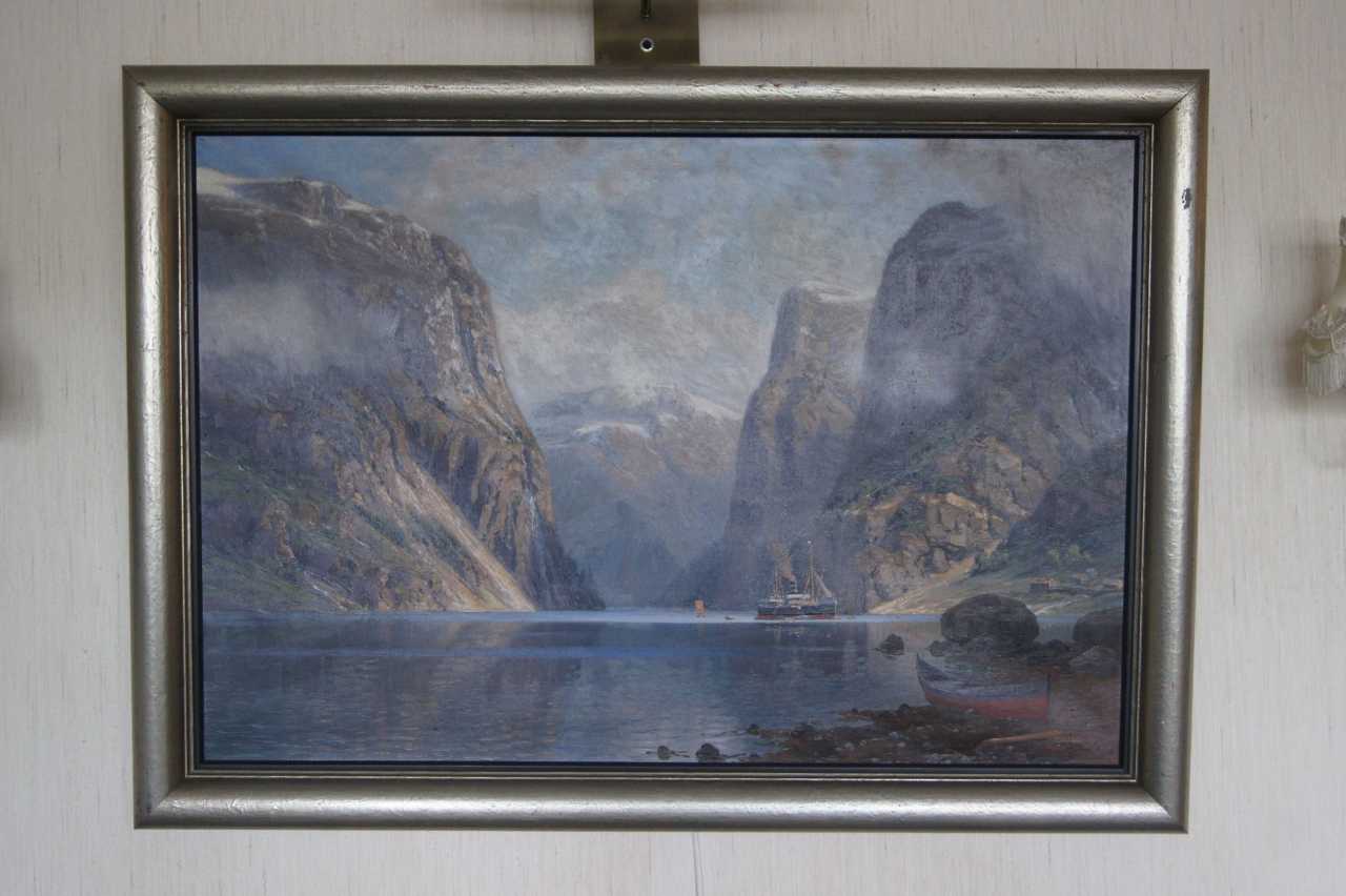 Johannes Harders (Allemand, 1871-1950) Vue sur le fjord norvégien Huile sur toile. Dimensions avec cadre : 106,5 x 76 cm. Dimensions sans cadre : 94 x 64 cm.