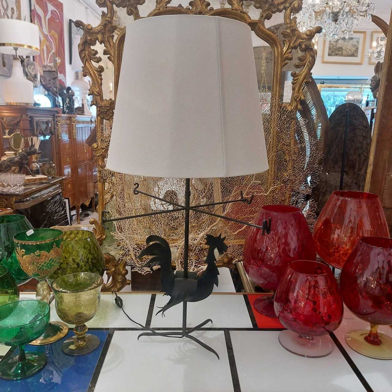 Wrought Iron Rooster Weathervane Lamp 1950s Iron and paper Mid-20th century