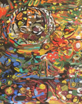 Работа исполнена в стиле Абстрактного экспрессионизма, на бумаге, гуашью.