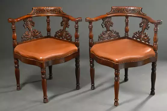 Los 1542 | 2 Historismus Ecksessel mit vollrund geschnitzten …