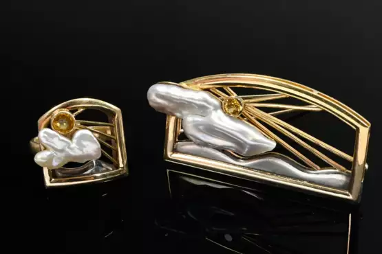 Los 394 | 2 Teile handgefertigter Gelbgold 750 und Silber 92…