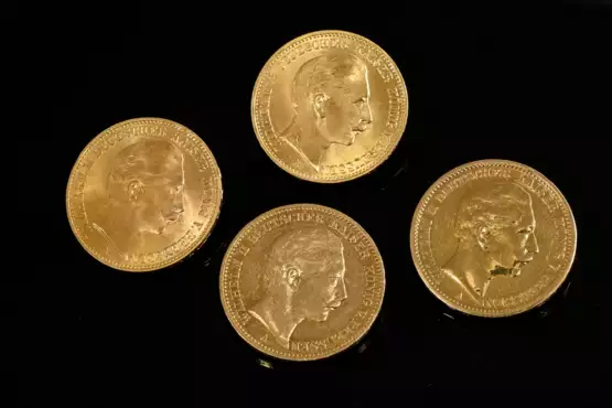 Los 444 | 4 Gelbgold 900 Münzen „20 Mark, Wilhelm II Deutsch…
