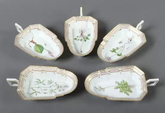 Los 865 | 5 Henkel-/Beilagenschalen mit Dekor ''Flora Danica'' Royal Copenhagen,…