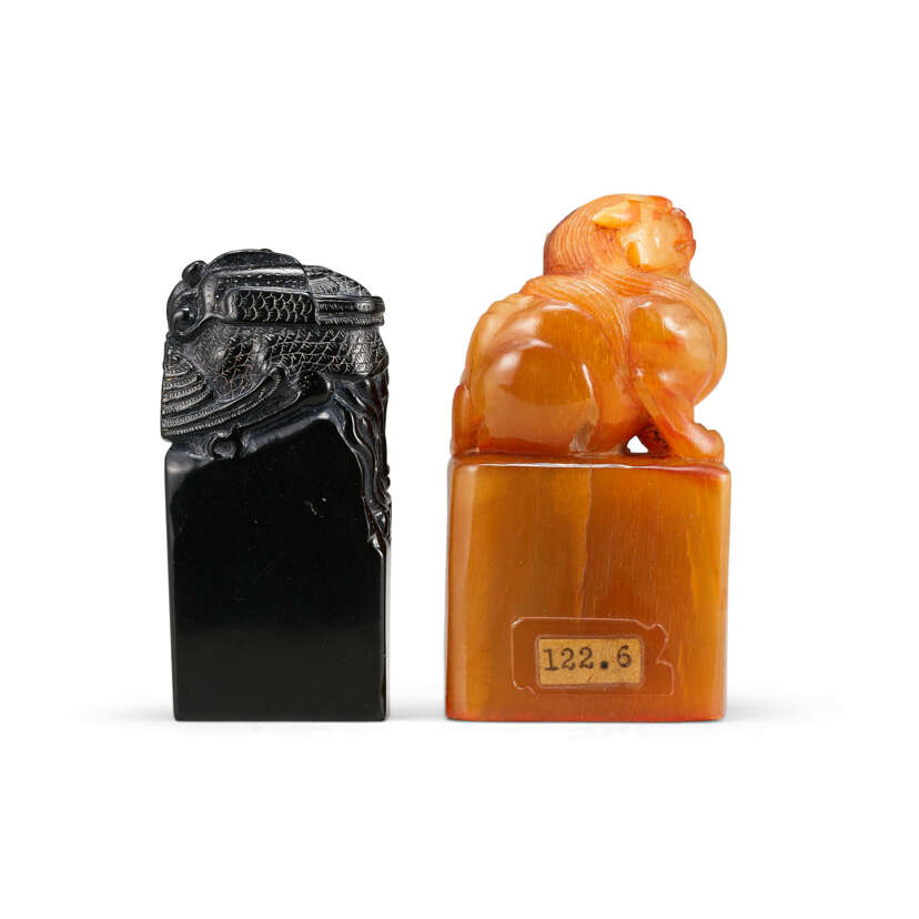 Los 1333 | A BLACK ‘PHOENIX’ SOAPSTONE SEAL AND A HORN ‘MYTHICAL BEAST’ SEAL