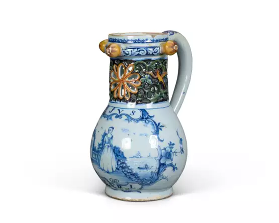 Los 69 | A DUTCH DELFT MIXED TECHNIQUE PUZZLE JUG