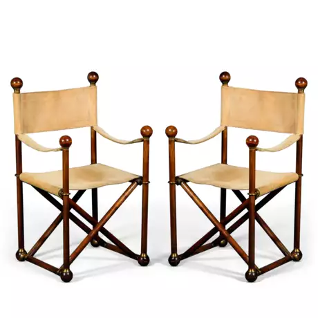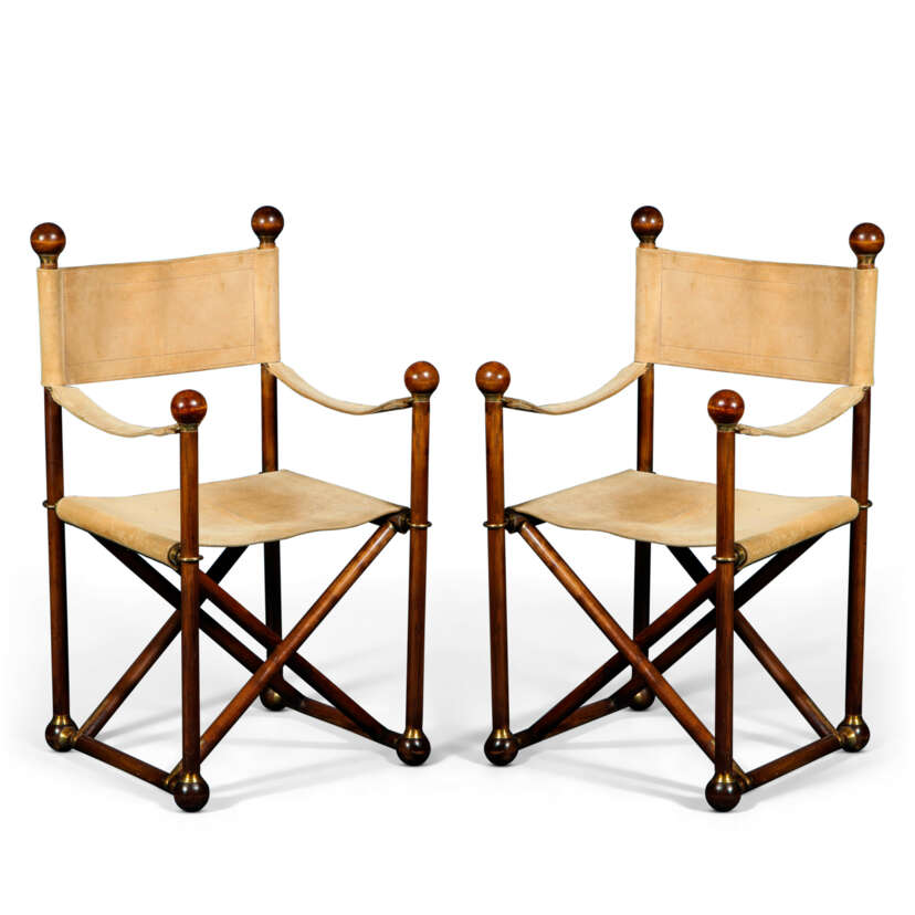 Los 7 | A PAIR OF WALNUT CAMPAIGN STYLE FOLDING CHAIRS